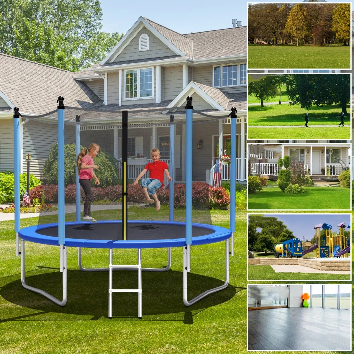 Veelzijdig gebruik : Deze trampoline is ideaal voor tuinen, speelzalen, parken en speeltuinen om het evenwicht en de flexibiliteit van kinderen te bevorderen. Geleverd in meerdere verpakkingen (244 cm/305 cm – 2 verpakkingen, 366 cm/427 cm -3 verpakkingen).