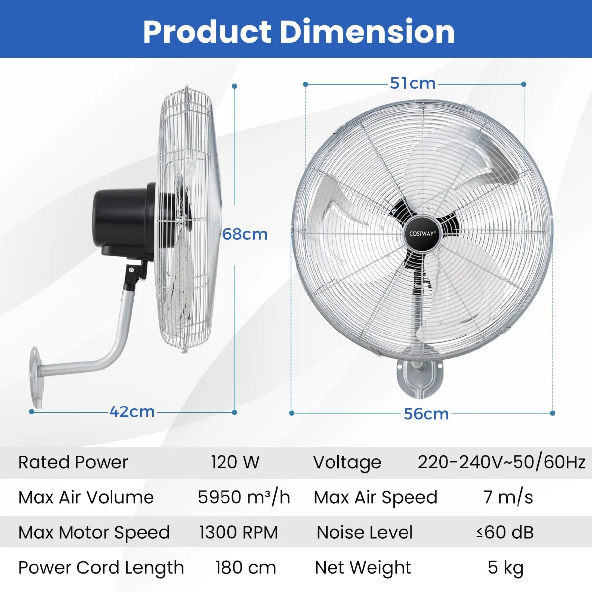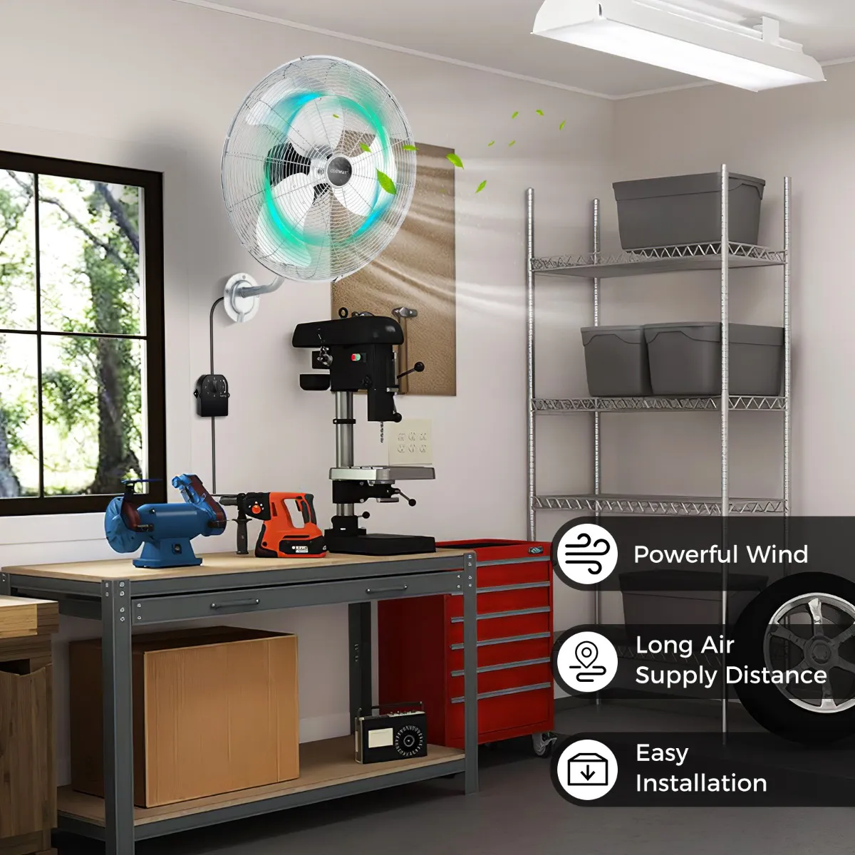 【3 Ventilatorsnelheden & Sterke Luchtcirculatie】Onze 51 cm wandventilator is uitgerust met 3 ventilatorsnelheden: laag/middel/hoog, waardoor u de gewenste luchtstroom kunt kiezen. Bovendien biedt de huishoudventilator sterke en krachtige wind en werkt hij op hoge snelheid met 3500CFM en 1300RPM.**