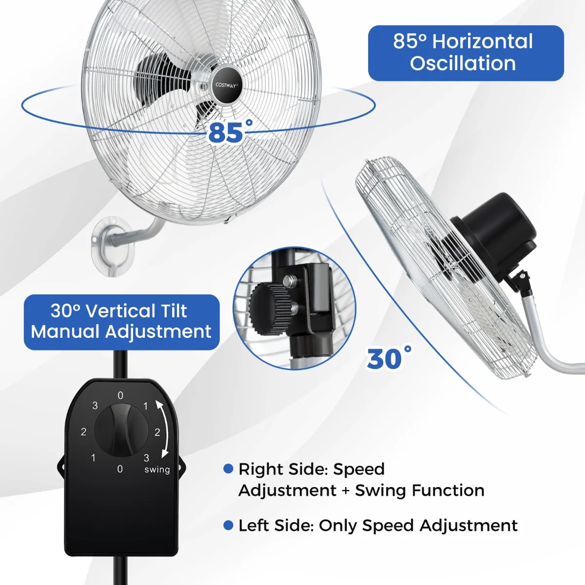 【Brede Oscillatie & Kantelbare Kop】Deze wandgemonteerde ventilator beschikt over een flexibele aanpassing van de windrichting, die een breed dekkingsgebied garandeert en maximale luchtcirculatie biedt. De oscillerende ventilator kan 85° van links naar rechts bewegen, en de kop van de ventilator is ook 30° van boven naar beneden verstelbaar.