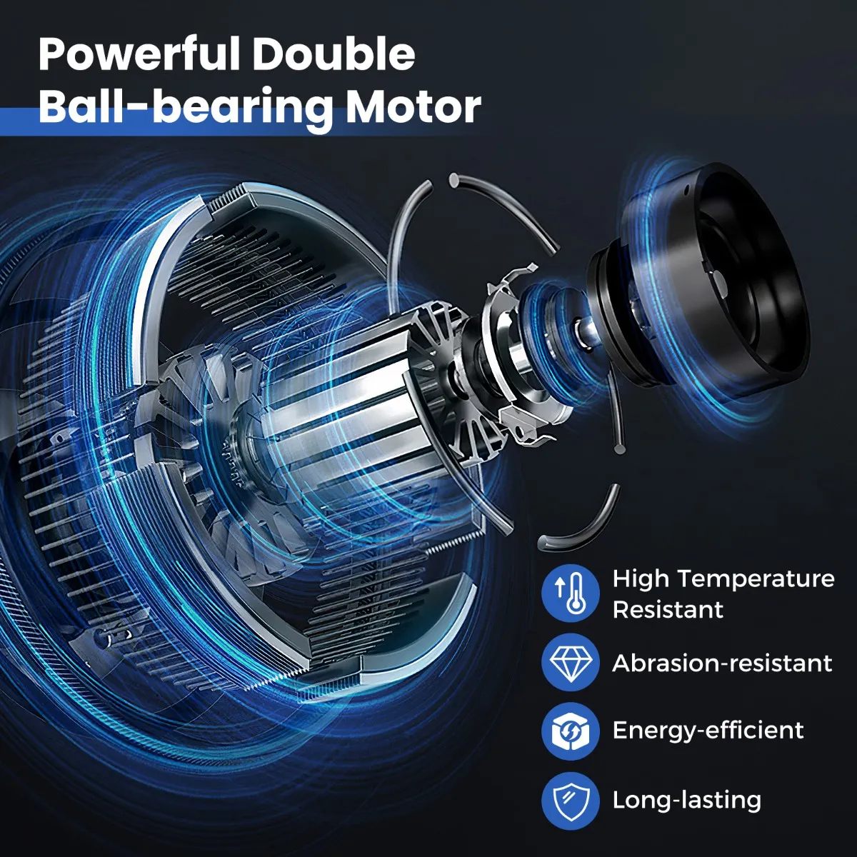 De motor is ontworpen met warmteafvoergaten voor een langere levensduur