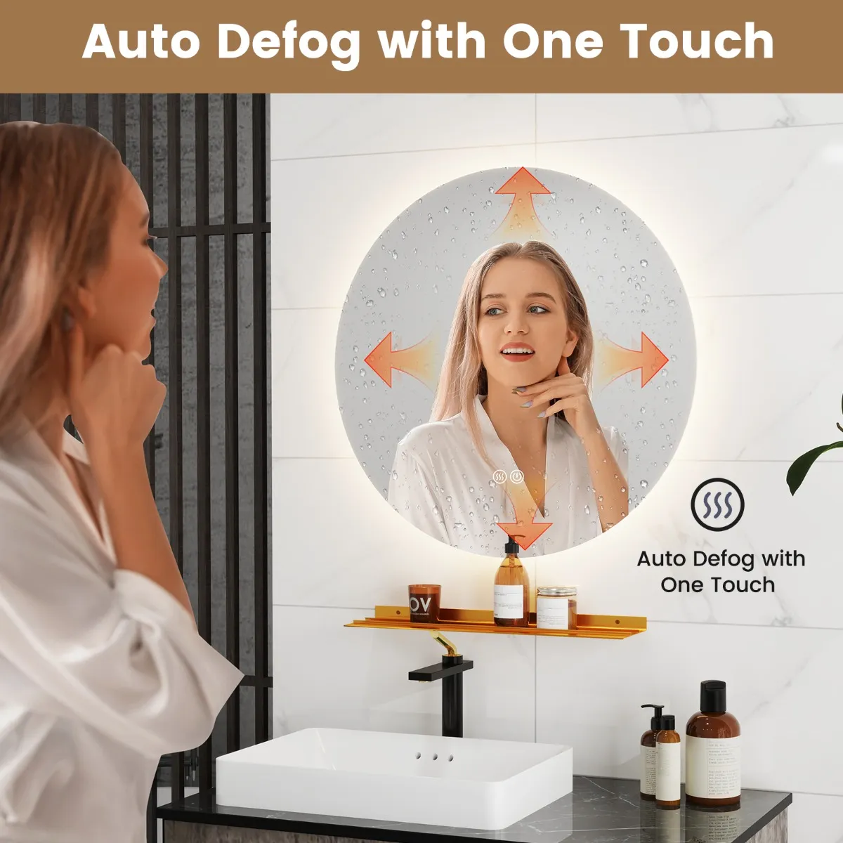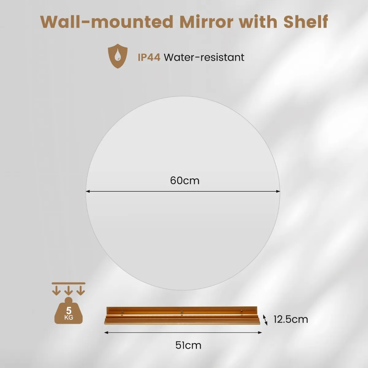 Deze LED wandspiegel is gemaakt van 5mm kopervrij zilverglas en biedt HD, vervormingsvrije reflecties. Hij biedt instelbare helderheidsinstellingen, opties voor warm, natuurlijk of wit licht en een automatische ontwasemingsfunctie voor helder zicht in natte badkamers, allemaal eenvoudig te bedienen met de 2 aanraakschakelaars. De geheugenfunctie zorgt ervoor dat je favoriete instellingen worden opgeslagen. Voor extra gemak wordt hij geleverd met een opbergplank en stekker voor snelle installatie zonder ingewikkelde bedrading.