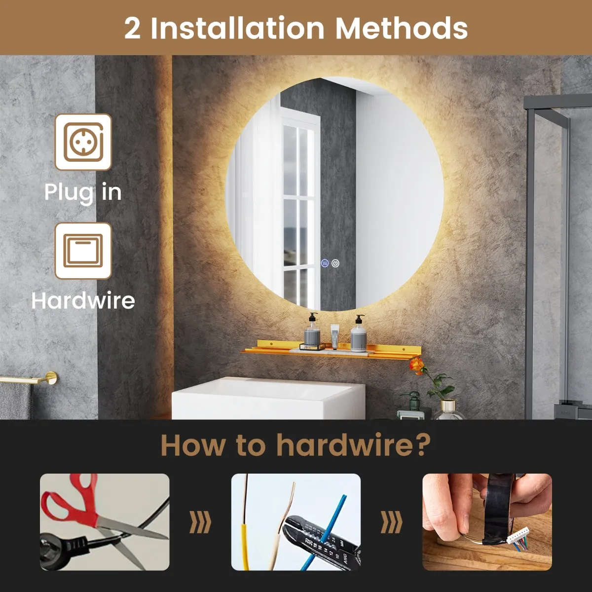【Dimbare LED verlichting】: Onze badkamerspiegel heeft LED verlichting die traploos gedimd kan worden. Pas de helderheid aan van 10% tot 100% met een lange druk op de aan/uit-schakelaar en geniet van gepersonaliseerde verlichting voor het aanbrengen van make-up of het nemen van een ontspannend bad.