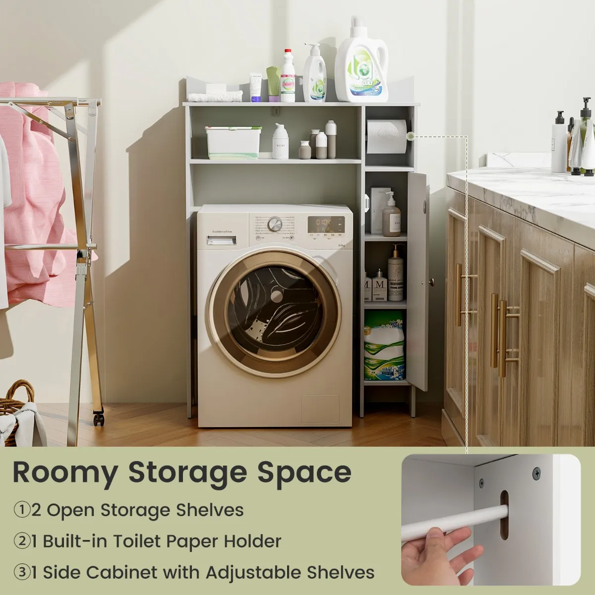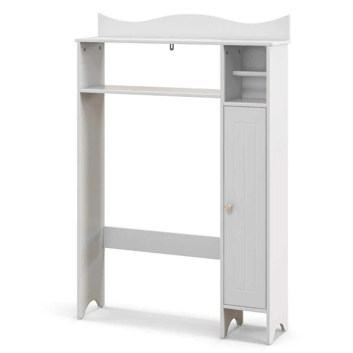 Ruimtebesparend ontwerp: Deze opbergkast voor boven het toilet is speciaal ontworpen om de beperkte badkamerruimte optimaal te benutten. Met een vrije ruimte van 54,5 cm x 82 cm (B x H) past hij perfect in de meeste standaard toiletten of wasmachines, waardoor hij extra opbergruimte biedt zonder vloerruimte in beslag te nemen.