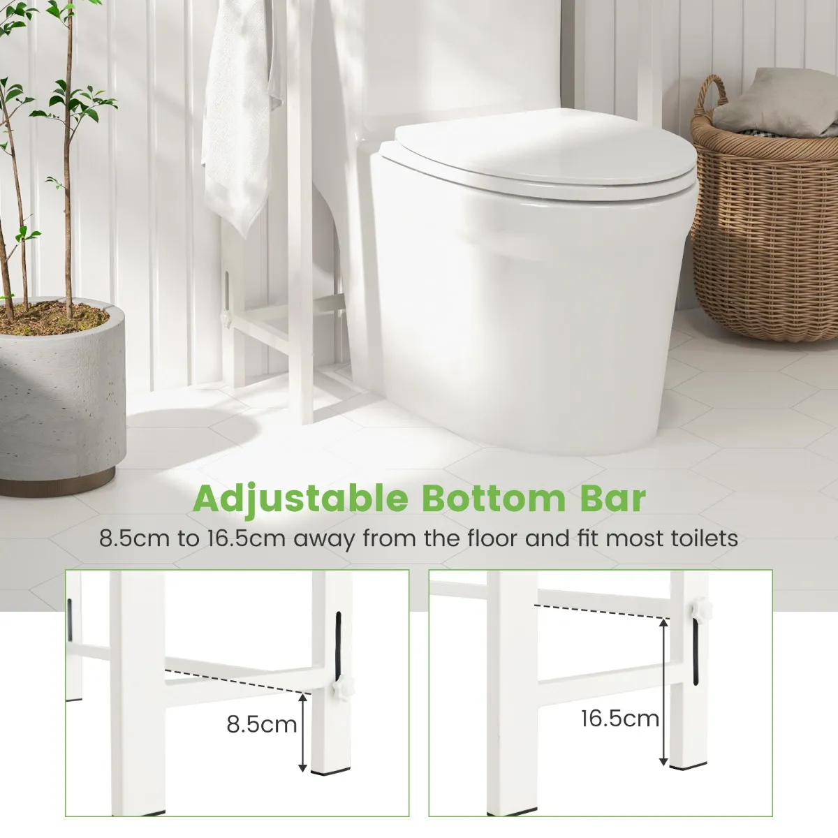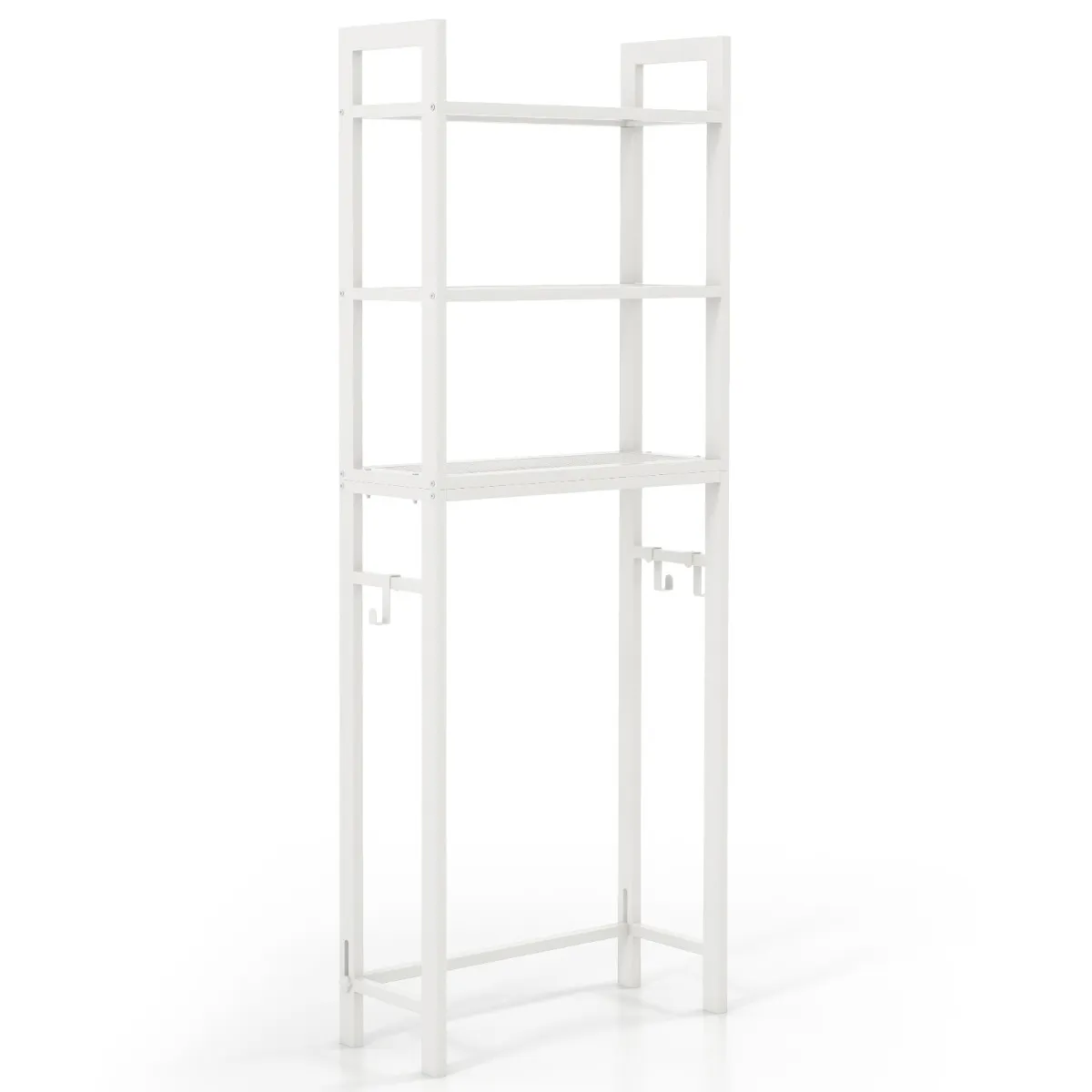 Opbergrek Boven Het Toilet Metalen Organiser Kantelbeveiliging 3 Haken 3 Planken Voor Badkamer Toilet Wit