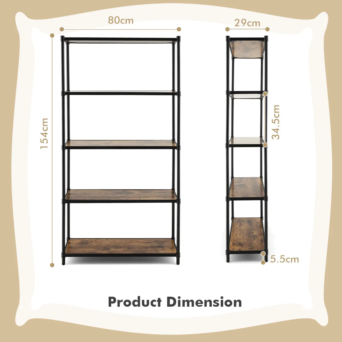 Als je geen mogelijkheid hebt om boeken, sieraden of andere dingen die je dagelijks nodig hebt op te bergen, is ons veelzijdige opbergrek een goede hulp. Het 5-traps ontwerp en de afstand van 34,5 cm tussen de afzonderlijke planken geven het boekenkast veel opbergruimte, zodat je de verticale ruimte goed kunt gebruiken voor opslag of presentatie.
