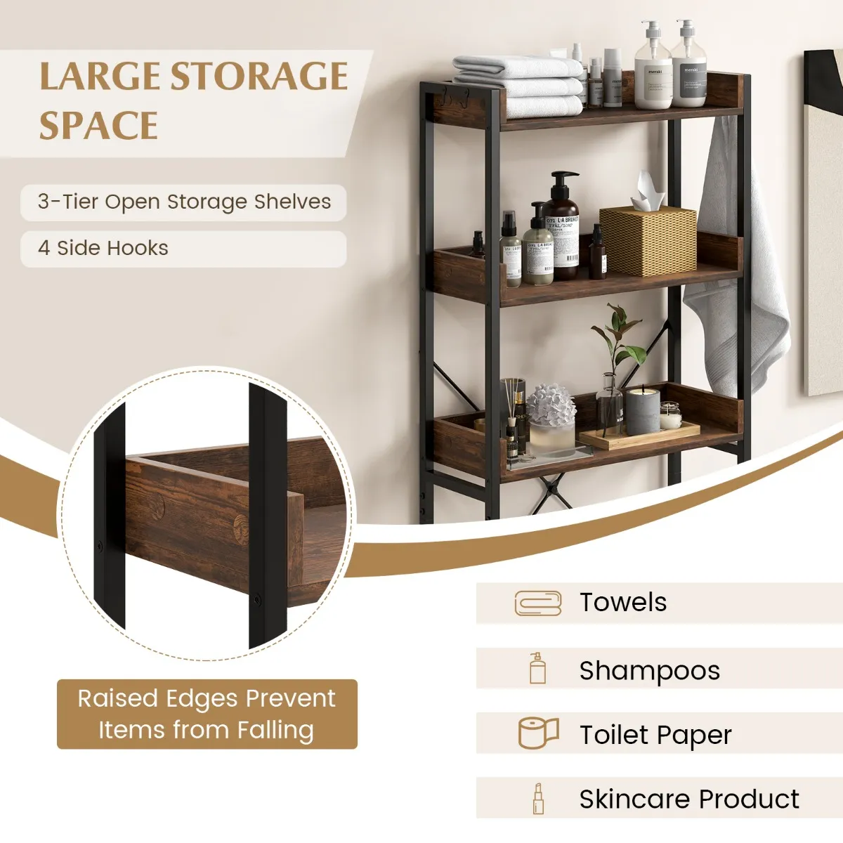 Veel opbergruimte: Deze toilethouder heeft 3 niveaus open opbergplanken en 4 zijhaken om je badkamerbenodigdheden georganiseerd en gemakkelijk toegankelijk te houden, zoals handdoeken, shampoo, toiletpapier en huidverzorgingsproducten. Bovendien voorkomen de opstaande randen dat spullen eruit vallen.