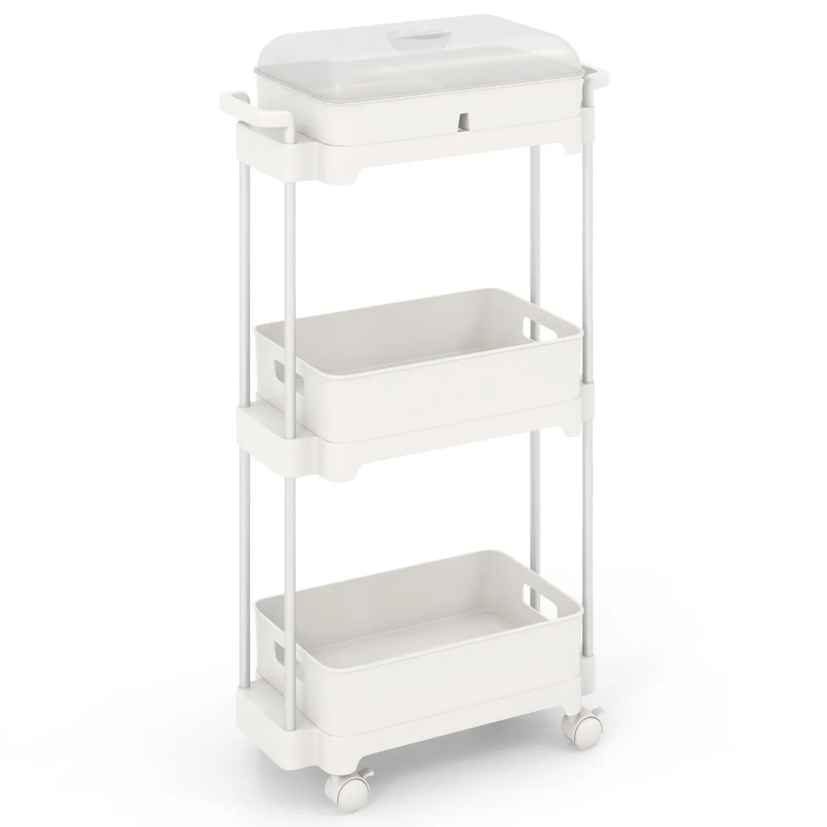 【Unieke en praktische bovenste opbergbox】: De bovenste opbergbox van deze trolley op wieltjes heeft een transparant deksel en 3 verdeelde compartimenten, zodat je je eigen opbergoplossing kunt samenstellen. Deze unieke toevoeging biedt gemak door items binnen handbereik en netjes gescheiden te houden.