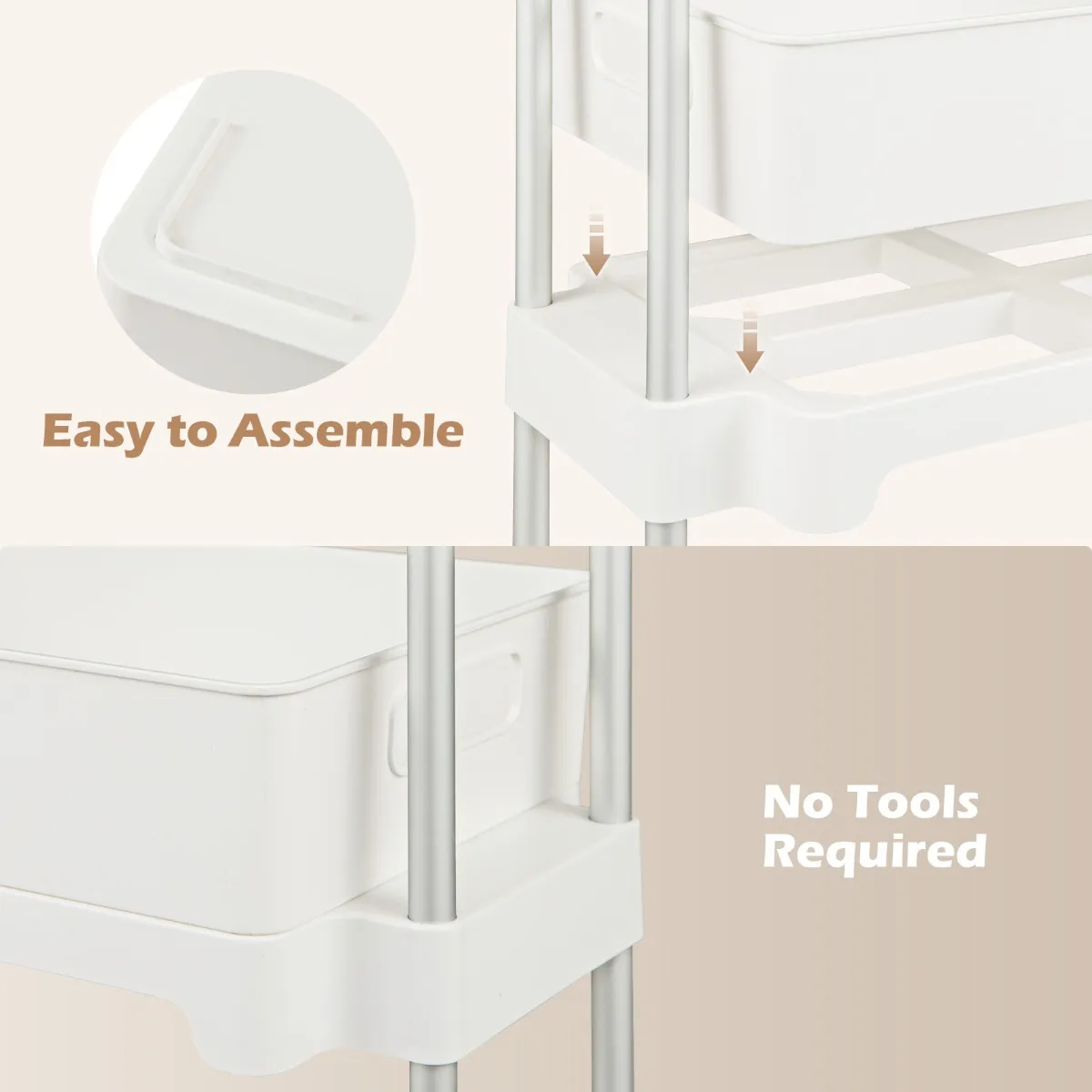 【Eenvoudig te monteren zonder gereedschap】: Het monteren van deze verrijdbare opbergkast is eenvoudig dankzij de eenvoudige structuur en stapsgewijze instructies. Dankzij de clip-on structuur kun je je nieuwe verrijdbare trolley installeren zonder gereedschap, waardoor je tijd bespaart.