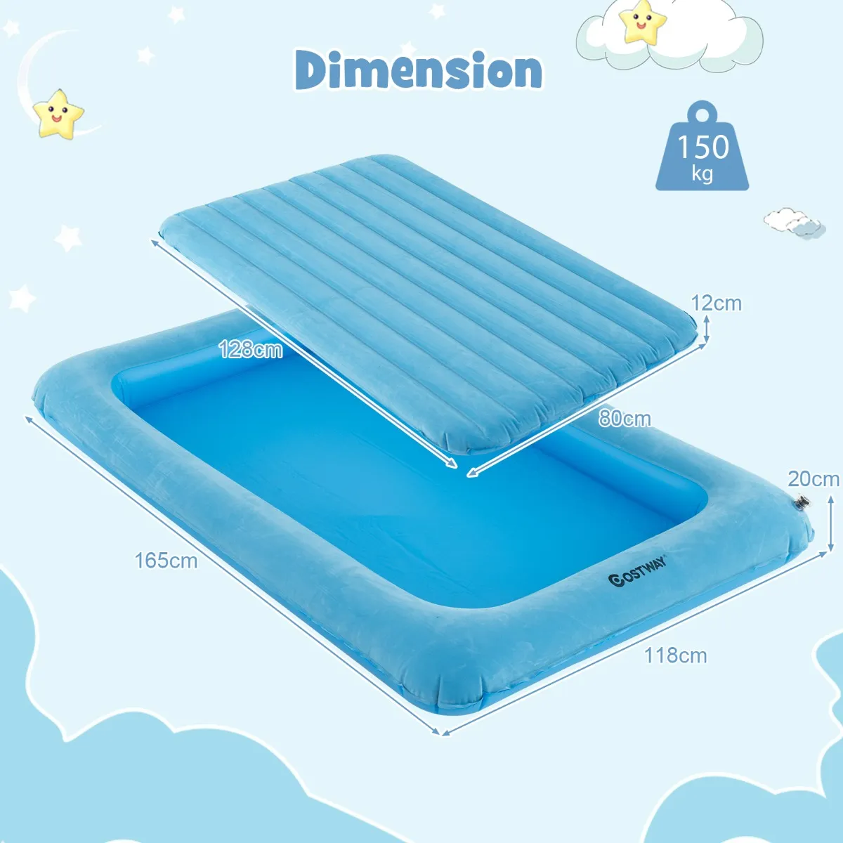 [Dubbelzijdig luchtbed]: Ontworpen voor comfort en functionaliteit, het luchtbed heeft een uniek dubbelzijdig ontwerp met een zacht gevlokt oppervlak aan de ene kant en een glad PVC-oppervlak aan de andere kant. Het kan kinderen de beste slaapervaring bieden, afhankelijk van hun behoeften en omgeving.