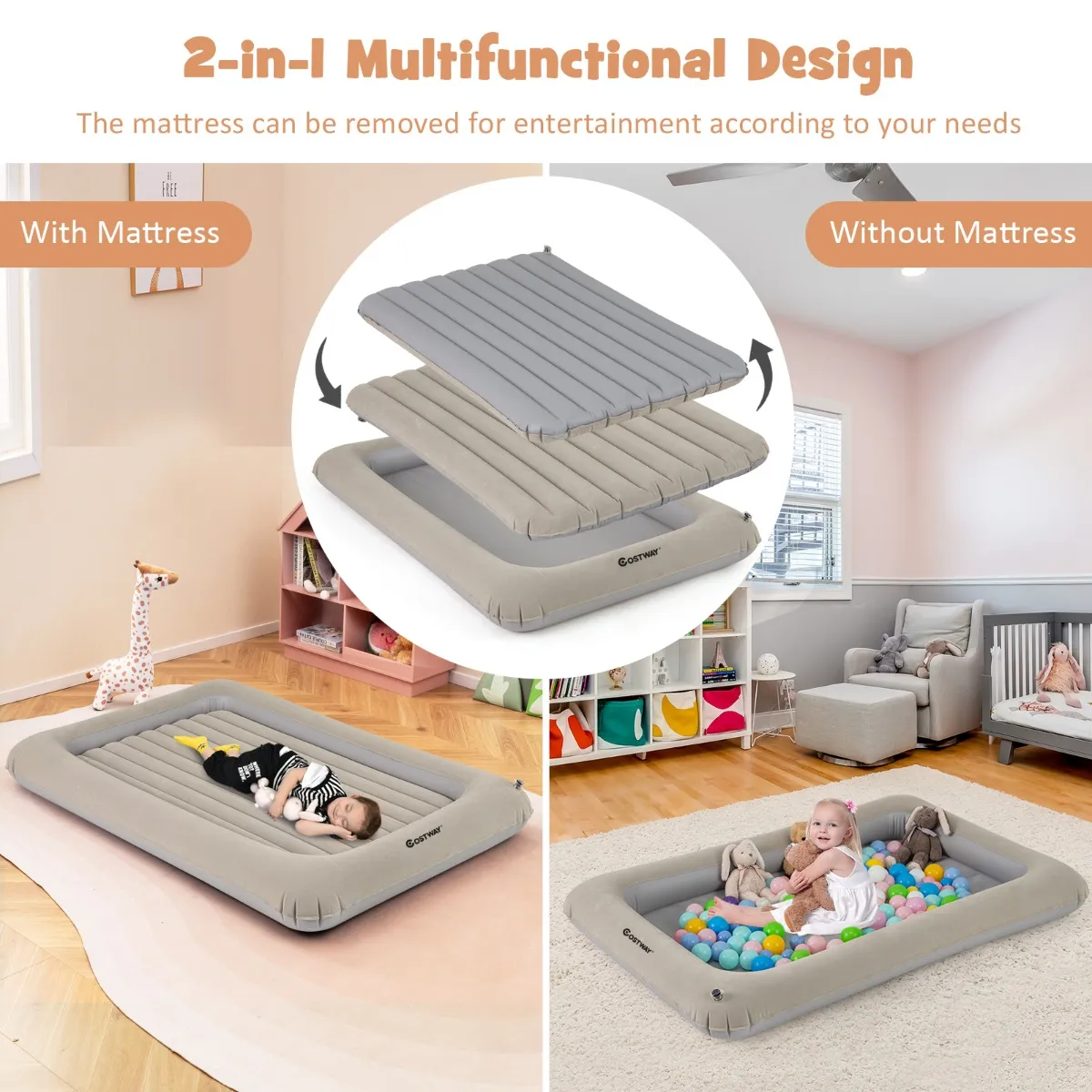 [Multifunctioneel 2-in-1 ontwerp]: Deze opblaasbare kinderbedset bestaat uit 2 delen: de matras en het bed. De matras kan worden verwijderd voor vermaak als dat nodig is. Na het verwijderen van de matras kan het opblaasbare bed gebruikt worden als speelgoedzwembad, waar je baby heerlijk kan zitten en spelen.