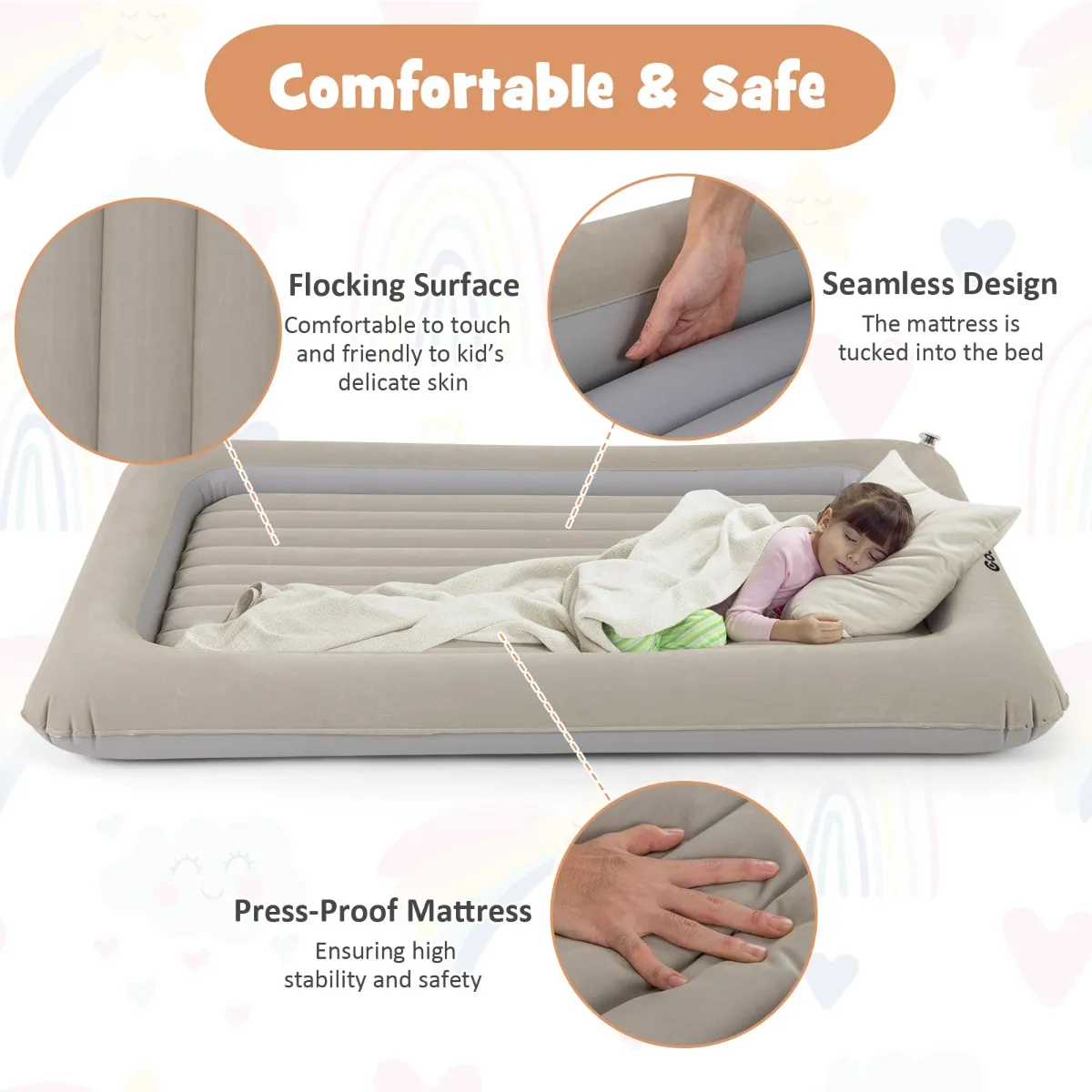 [Kindvriendelijk materiaal]: Dit opblaasbare reisbedje voor peuters is gemaakt van doorprikbestendig, draagbaar PVC en is supersterk en duurzaam. Het naadloze ontwerp en de verhoogde bedranden zorgen ervoor dat je kleintje comfortabel en veilig slaapt.