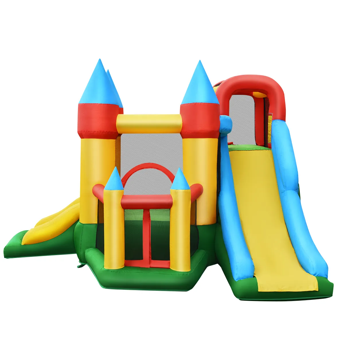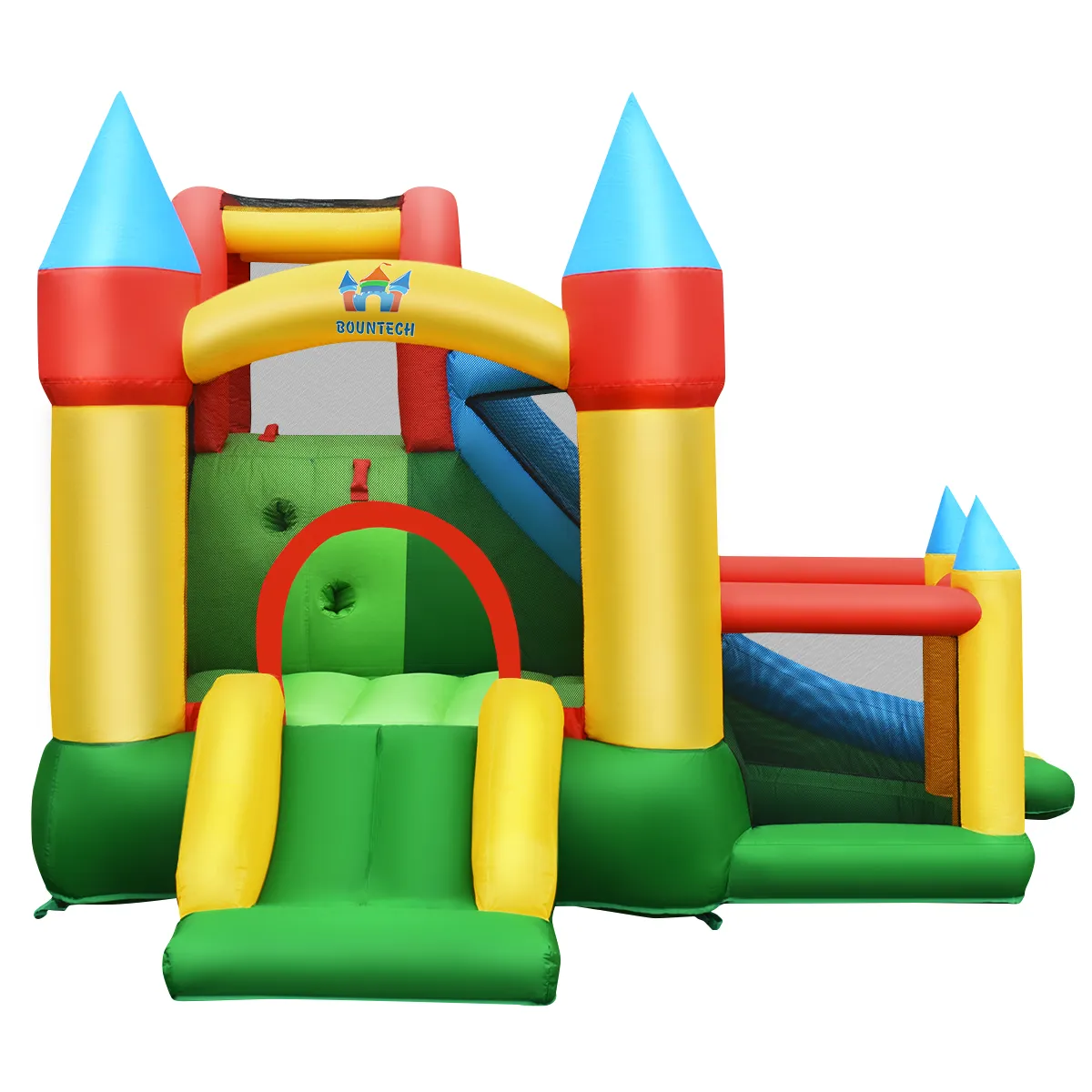 Ons opblaasbaar springkasteel zal ononderbroken geluk brengen en zal uw kinderen door hun kinderjaren begeleiden! Dit springkasteel wordt gewijd aan het brengen van pret en geluk aan kinderen in een veilig milieu. Het heeft veel pret voor kinderen en veel nuttig aan de groei en de gezondheid van kinderen. U kunt het gebruiken in de zomer of winter, binnen of buiten. Wat meer is, een trampoline, twee glijbanen, oceaanballen bad, basketbal rand en klimwand bieden verschillende plezier. Terwijl het oneindig plezier biedt, is het ook gericht op veiligheid. Gemaakt van oxford stof bekleed met PVC, dit opblaasbare springkussen is prikbestendig. Een veilige en hoge kwaliteit opblaasbare springglijbaan zou een perfecte keuze zijn.