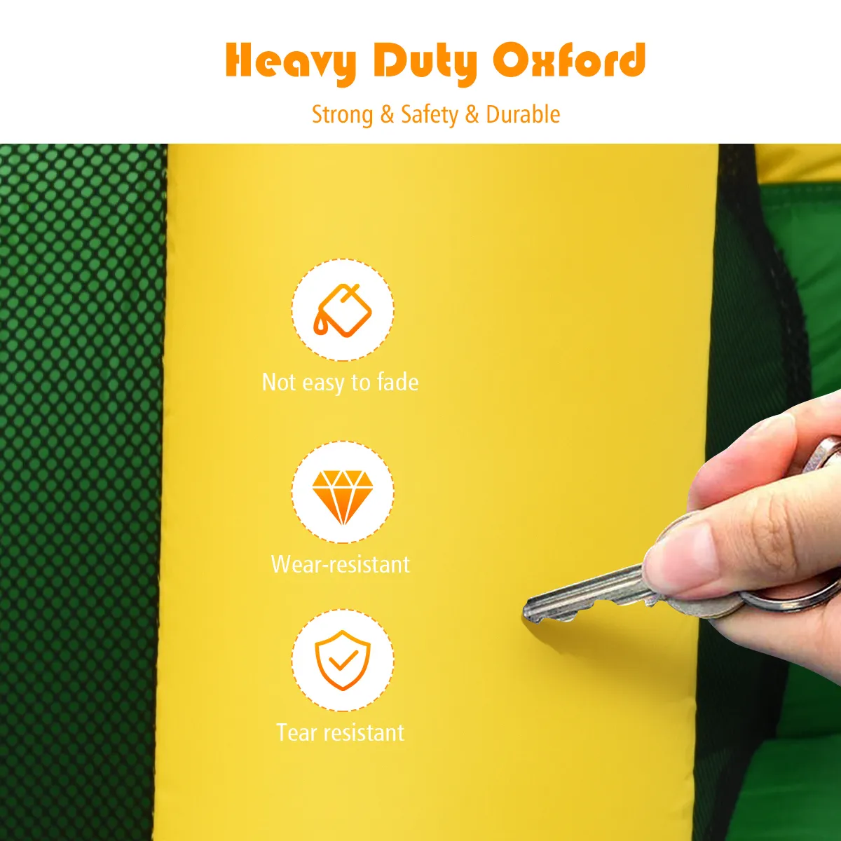 【Duurzame materialen & veiligheidsontwerp】Gemaakt van prikbestendig Oxford bekleed met PVC, heeft dit opblaasbare springkussen een betere sterkte en taaiheid. Buiten dat, zijn de trampoline en de bovenkant van lange glijbaan omringd door beschermende omheining om uw kinderen bescherming te geven.