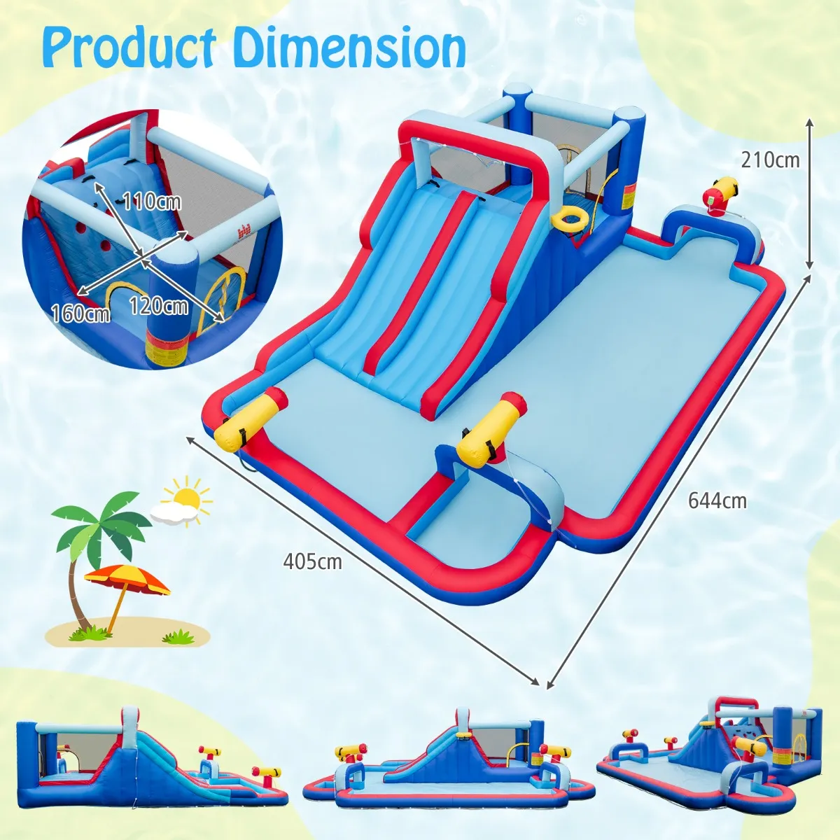 Meer dan een waterpark:Â Dit gigantische opblaasbare kasteel combineert een verscheidenheid aan entertainmentgebieden, waaronder 2 waterglijbanen, een enorm springgebied, een basketbalring en een klimmuur. Kinderen kunnen tegelijkertijd genieten van verschillende spellen en hun interesse in sport stimuleren (maximaal gewichtslimiet van het opblaasbare gebied: 135 kg).