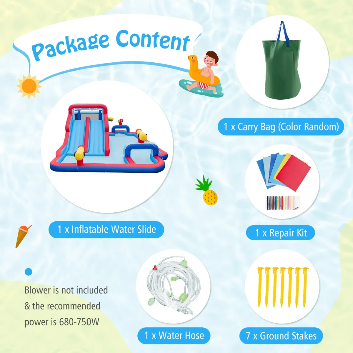 - Leveringsomvang: 1 x Opblaasbaar waterpark1 x Waterslang7 x Grondspikes1 x Reparatieset1 x Draagtas1 x Gebruikershandleiding