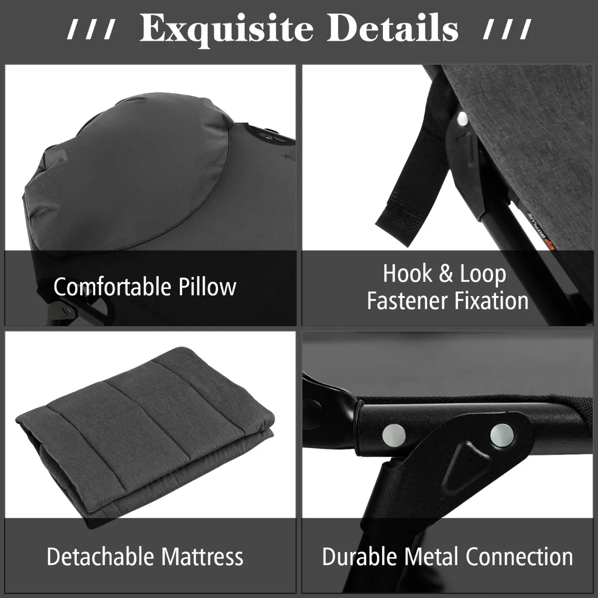 6-voudig verstelbare rugleuning: De opvouwbare ligstoel is uitgerust met een 6-voudig verstelbare rugleuning, die u kan helpen comfortabel boeken te lezen, te zonnebaden, spelletjes te spelen of in liggende of platte modus te slapen om aan uw verschillende behoeften te voldoen. En het kantelmechanisme is eenvoudig te verstellen.