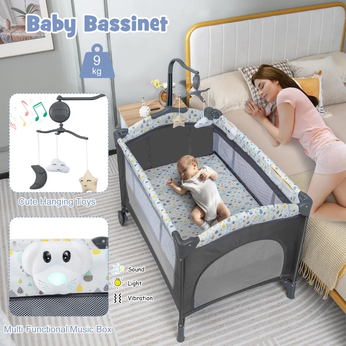 Dit multifunctionele babybed combineert een babywieg, commode en box in één en is geschikt voor baby’s tot peuters. De ronde anti-botsranden beschermen kinderen tegen verwondingen en de 7-punts draagstructuur zorgt voor een hoge stabiliteit. De commode is handig voor het verschonen van luiers, aankleden, aanraken en masseren van de baby. En in de opbergtas kun je wat babybenodigdheden opbergen. Dit draagbare babybedje met matras is eenvoudig en zonder gereedschap op te vouwen en uit te klappen. En er zit een draagtas in het pakket.