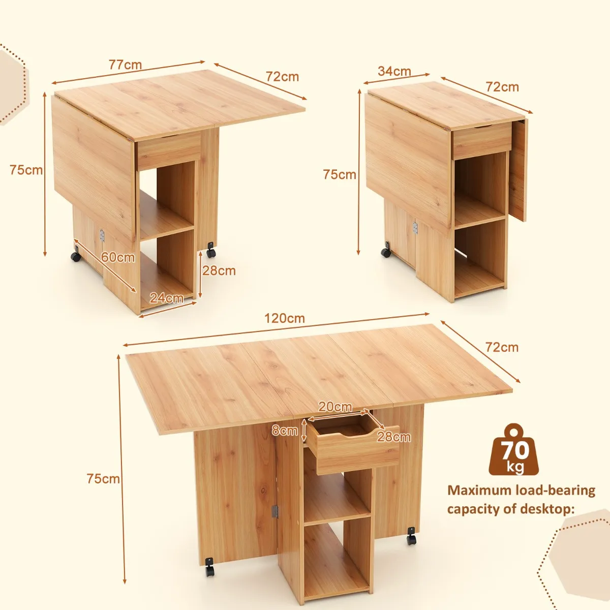 【Veel opbergruimte】Met 2 opbergplanken en een groot blad kan deze klaptafel keukenbenodigdheden, servies of kantoorbenodigdheden opbergen. Er is ook een lade voor kleine spullen.