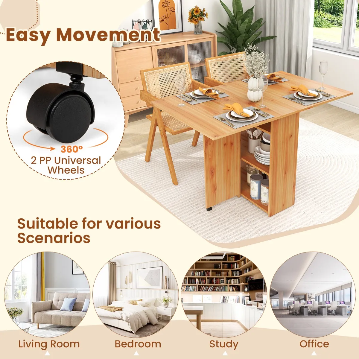 【Stabiele structuur】 Het compacte onderstel van de tafel zorgt ervoor dat hij stabiel en evenwichtig is tijdens gebruik. Zelfs als er maar één kant van de tafel open is, zal hij niet instorten. Bovendien maken de 2 soepele universele wielen het gemakkelijk om de tafel uit te klappen of in te klappen.