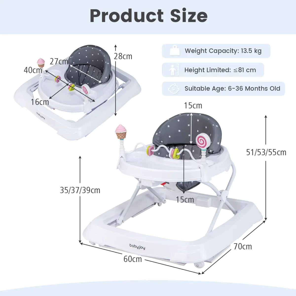 Uitgerust met speelgoed dat de intelligentie en mobiliteit van het kind bevordert, kan het de kleurwaarneming en de praktische vaardigheden van kinderen verbeteren. De structuur van de wandelwagen is stabiel en kantelt niet, waardoor kinderen beschermd zijn tegen vallen en de veiligheid van de baby wordt gewaarborgd. En de wandelwagen kan worden ingeklapt, wat krachtig en ruimtebesparend is. Nog belangrijker is dat de loopwagen op drie verschillende hoogtes kan worden ingesteld om aan de eisen van je geliefde kleintje te voldoen.