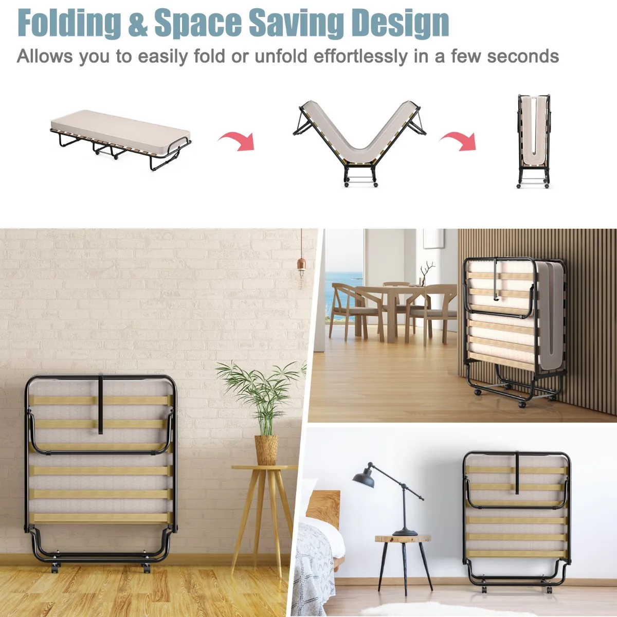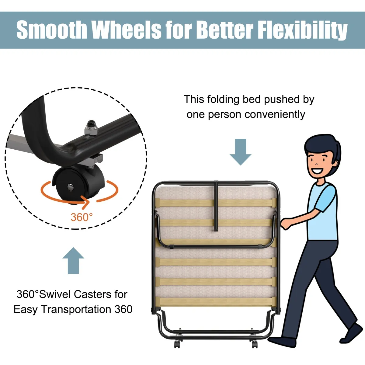 【Gemakkelijk te verplaatsen en veelzijdig te gebruiken】 Dankzij de 4 360° zwenkwielen kunt u het vouwbed gemakkelijk in elke gewenste positie zetten. Dit gastenbed met het comfortabele traagschuimmatras is de perfecte keuze om uw gasten of vrienden te ontvangen, een dutje te doen tijdens de lunchpauze of te ontspannen op uw volgende reis.
