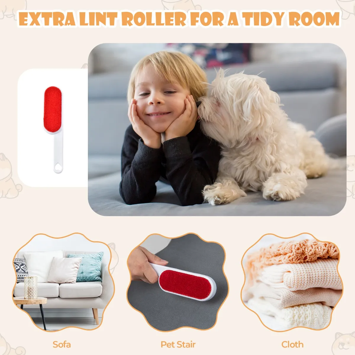 Gemakkelijk schoon te maken en te onderhouden: De afneembare hoes met rits is machinewasbaar, zodat je hem schoon kunt houden voor langdurig gebruik. Bovendien zit er een extra zelfklevende roller bij om je te helpen haren van huisdieren van de rail te verwijderen. Of je kunt hem gebruiken om haren van het bed en de bank te verwijderen.