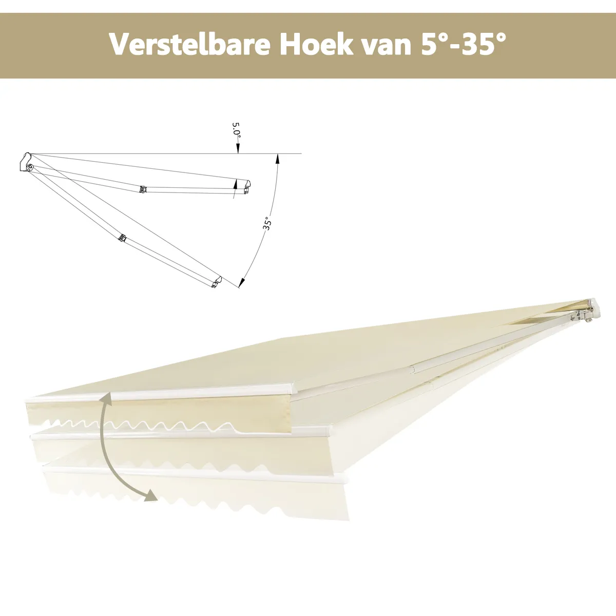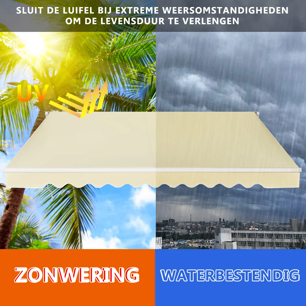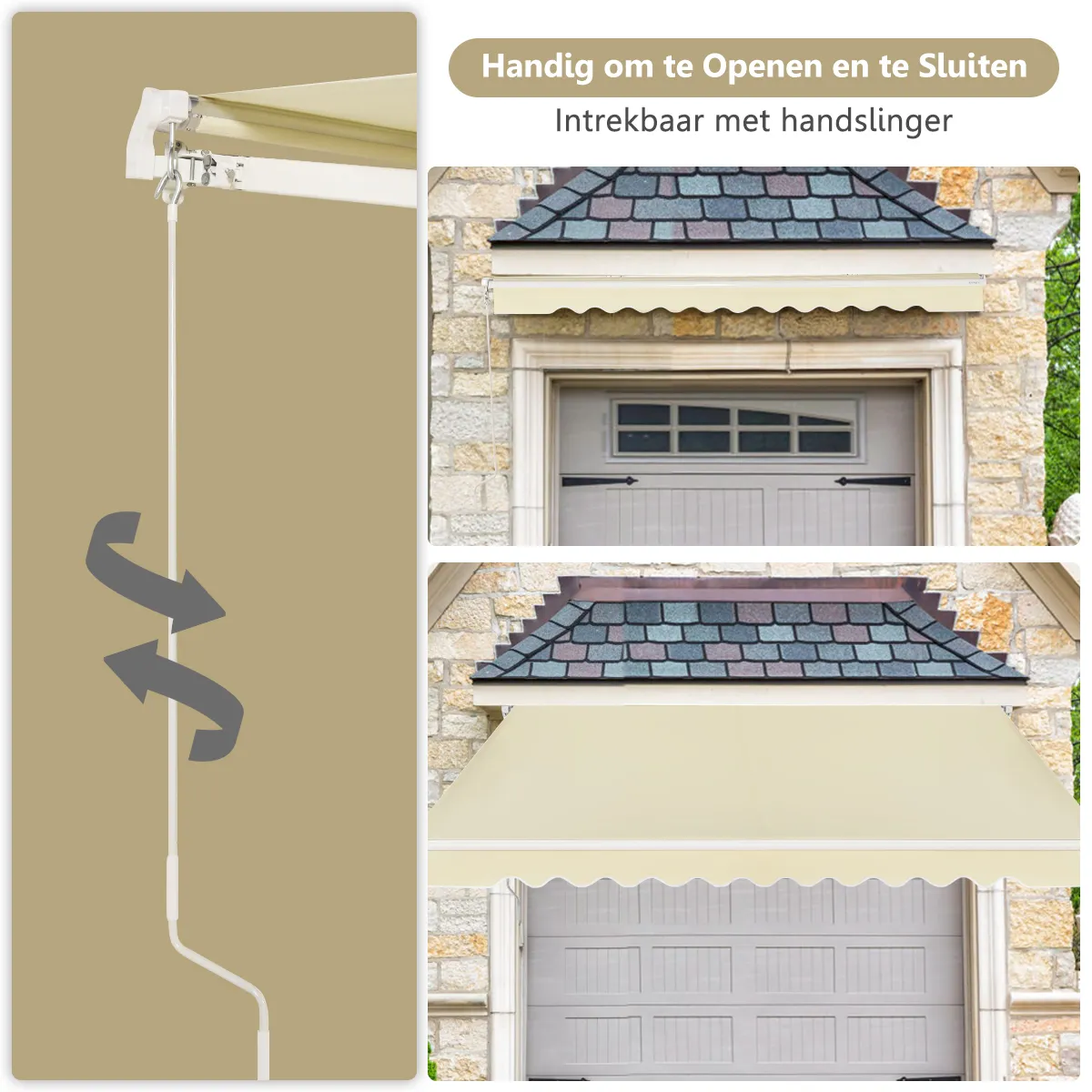 Oprolbaar voor eenvoudig gebruik: De luifel kan opgerold worden als je hem niet meer nodig hebt. Met zijn lange slinger opent en sluit hij soepel en gemakkelijk. Draai de slinger gewoon met de klok mee of tegen de klok in.