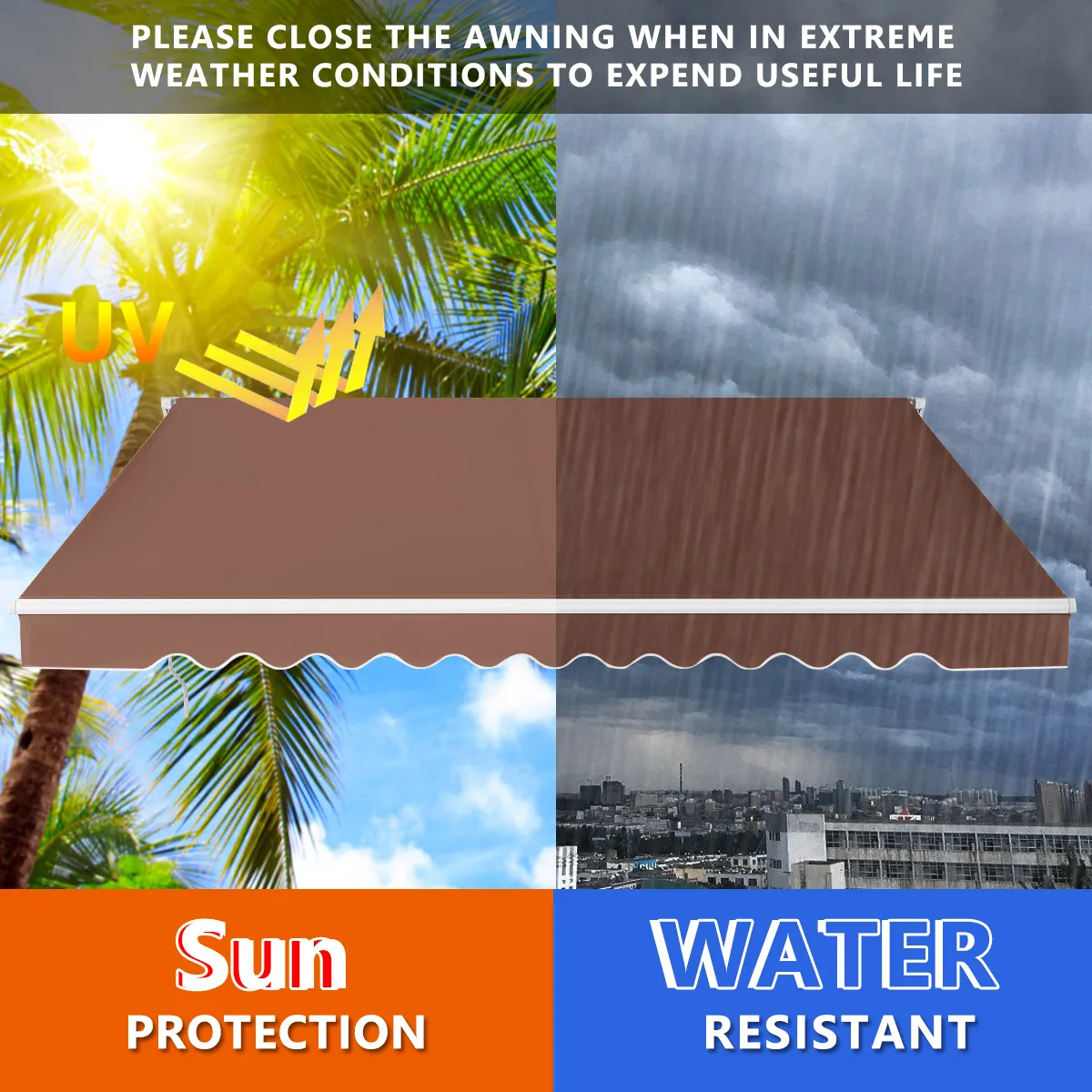 【Oprolbaar voor eenvoudig gebruik】 De luifel kan opgerold worden als je hem niet meer nodig hebt. Met zijn lange slinger opent en sluit hij soepel en gemakkelijk. Draai de slinger gewoon met de klok mee of tegen de klok in.
