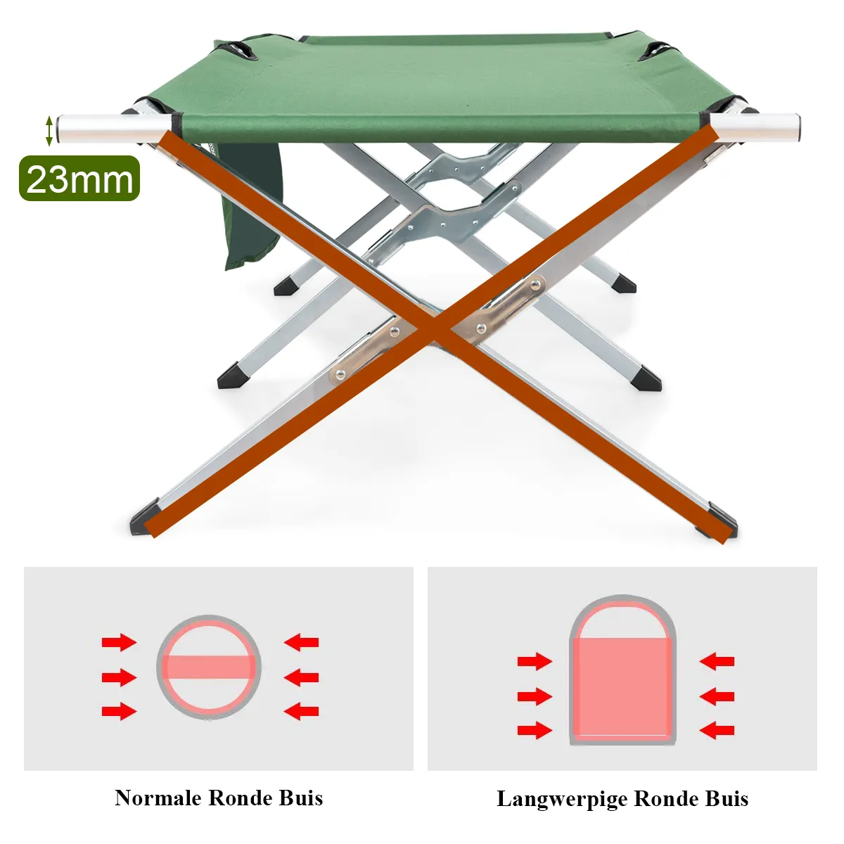 Dit draagbare slaapbed is voorzien van een stevig stalen frame met X-vormige poten, dat tot 204 kg kan dragen. Met de compacte opvouwbare afmetingen en de draagbare draagtas met handvat, is het militaire kampeerbed gemakkelijk in uw kampeeruitrusting te plaatsen en bespaart u veel ruimte. Bovendien is dit slaapbed voorzien van stevige oxford stof, wat de duurzaamheid en stabiliteit garandeert. Ook is dit kinderbedje gemakkelijk op te zetten en op te vouwen tot een compact formaat voor gebruiksgemak bij het kamperen, wandelen, vissen of op reis.