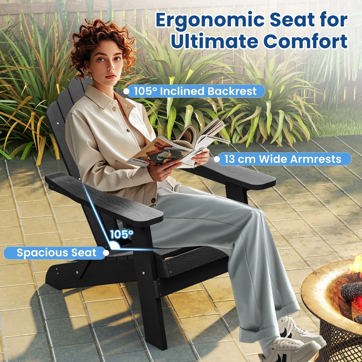 【Verschillende gelegenheden】: Deze veelzijdige Adirondack-stoel met elegant ontwerp is perfect voor vele gelegenheden, zoals in uw achtertuin, bij het zwembad of in een rustig hoekje in de tuin.