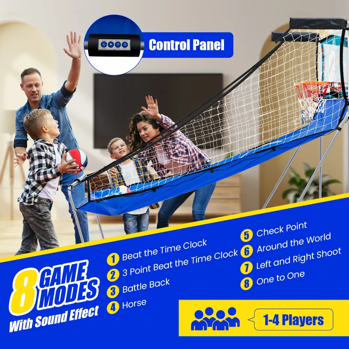 Leuk voor alle leeftijden: Dit opvouwbare basketbal arcadespel met dubbele schoten is de perfecte aanvulling voor elke speelkamer, kelder of tuin. Het is geschikt voor 1 tot 4 spelers en heeft geluidseffecten en 8 spelstanden, waaronder getimed, 3-punts, 1-op-1, enz.