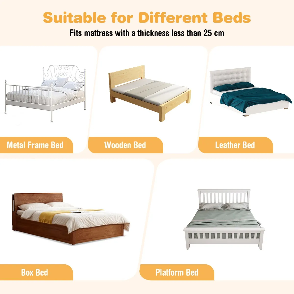 Geschikt voor matrassen met een dikte van minder dan 25 cm Â