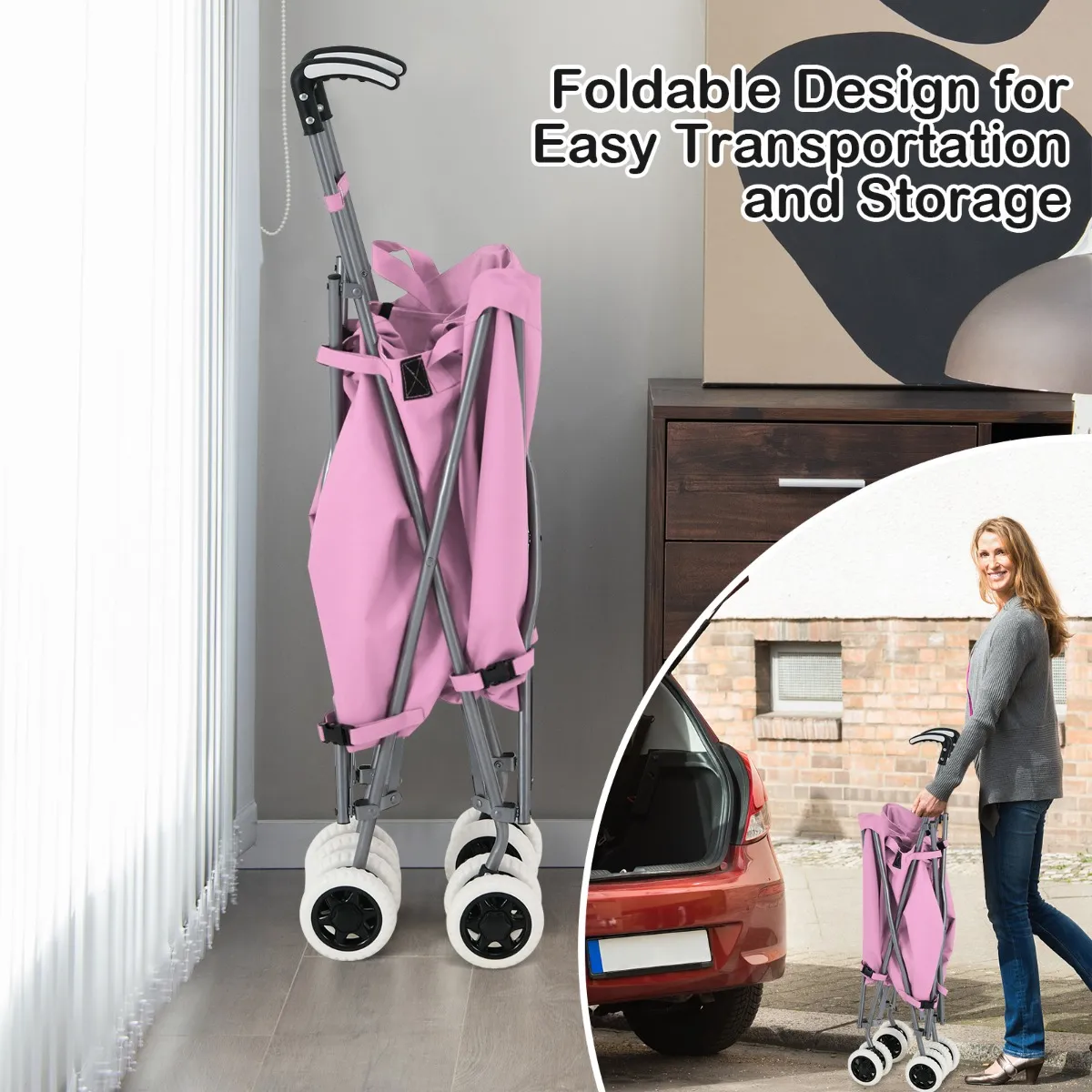 Deze inklapbare handkar is een goede hulp bij het winkelen! Deze winkelwagen met waterdichte en wasbare binnenvoering wordt ondersteund door het robuuste metalen frame met stabiele X-vormige constructie en biedt plaats aan verschillende levensmiddelen. In de tussentijd beschikt de liner over een passende afdekking ter bescherming van de privacy. De stille en schokbestendige wielen en de gripvaste handgrepen maken het schuiven moeiteloos. Als je deze winkelwagen niet nodig hebt, vouw je hem gewoon in en plaats hem ruimtebesparend aan de muur.