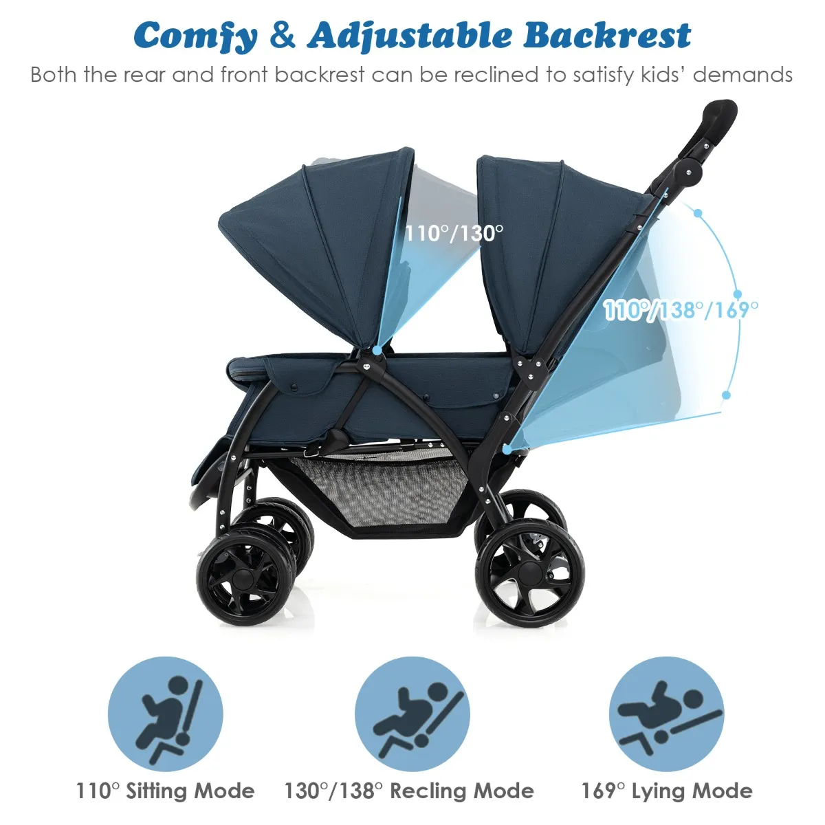 Ontwerp met dubbele zitting maakt de kinderwagen perfect voor 2 peuters tegelijk