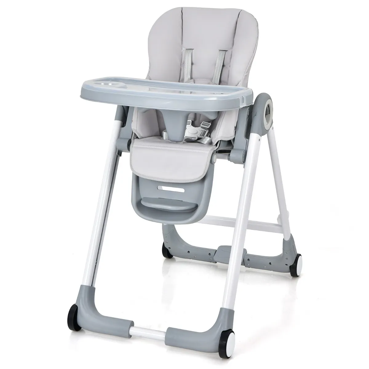 Vrij bewegen en remmen in één stap: Uitgerust met 4 soepele wielen kan deze kinderstoel gemakkelijk van de ene kamer naar de andere worden verplaatst. Bovendien kan het remsysteem in één stap alle 4 de wielen tegelijk bedienen, waardoor de kinderstoel stevig op zijn plaats blijft staan en een plotselinge glijpartij, die je kind zou kunnen verwonden of bang maken, wordt voorkomen.