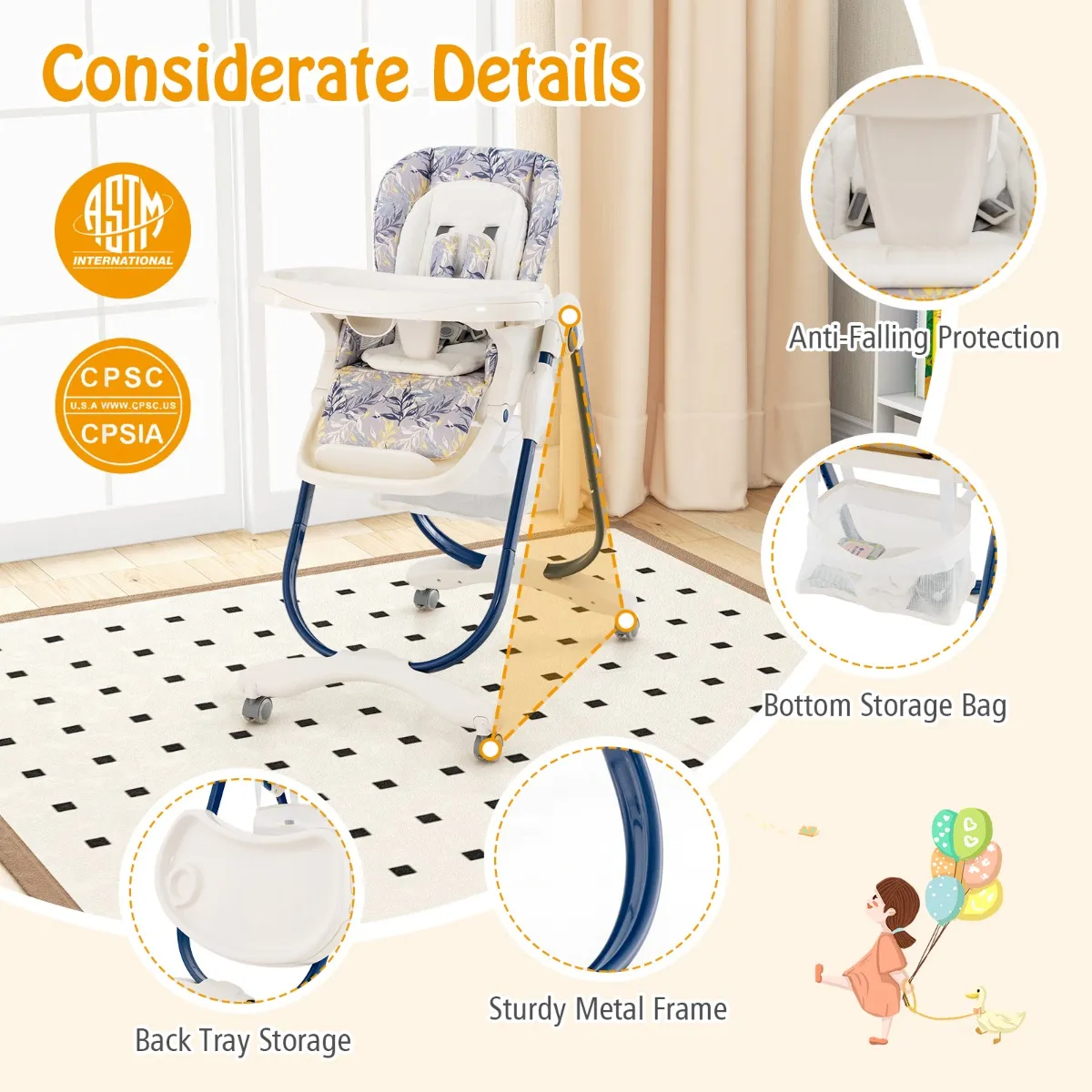 Gemakkelijk te verplaatsen en op te bergen: Deze goed ontworpen kinderstoel is ook uitgerust met 4 universele, vergrendelbare, 360° zwenkwielen die stil en slijtvast zijn voor moeiteloze verplaatsing. Bovendien kan de kinderstoel worden ingeklapt om ruimte te besparen als hij niet wordt gebruikt.