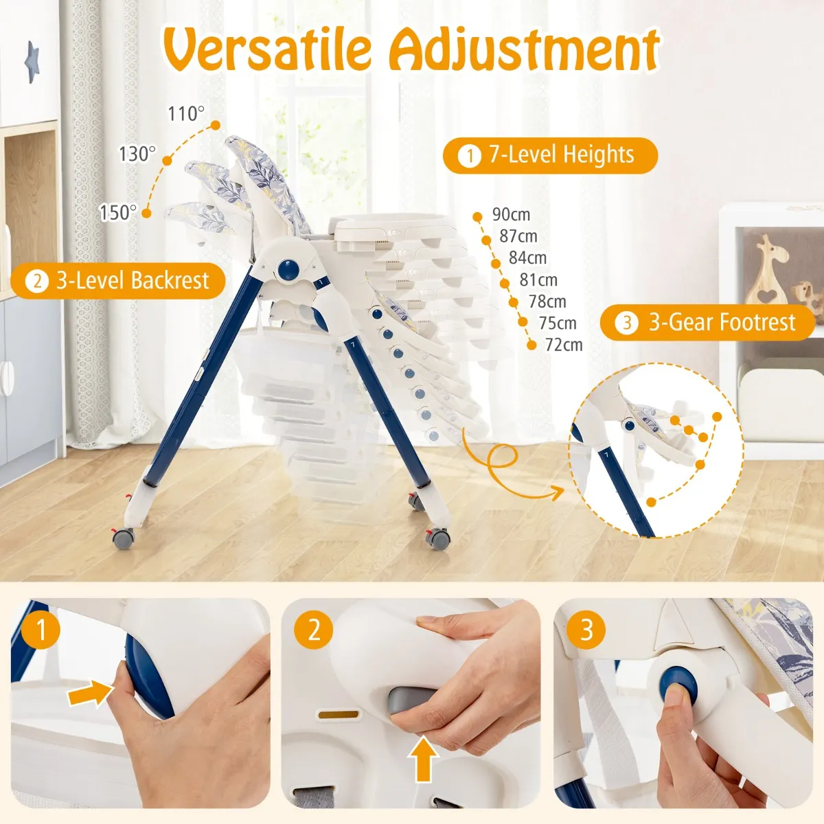 Deze veelzijdige kinderstoel is perfect voor baby’s van 6 tot 36 maanden. De stoel is in hoogte verstelbaar, heeft een rugleuning, voetensteun en een dubbel dienblad en zal je kind begeleiden terwijl het groeit. Het afneembare dienblad is perfect voor eten en spelen, want het is BPA-vrij en vaatwasmachinebestendig voor eenvoudig schoonmaken. De gevoerde zitting zit comfortabel en is voorzien van valbeveiliging en een 5-punts veiligheidsgordel. Het opvouwbare metalen frame en de vergrendelbare wielen maken hem stabiel en makkelijk te verplaatsen en op te vouwen.