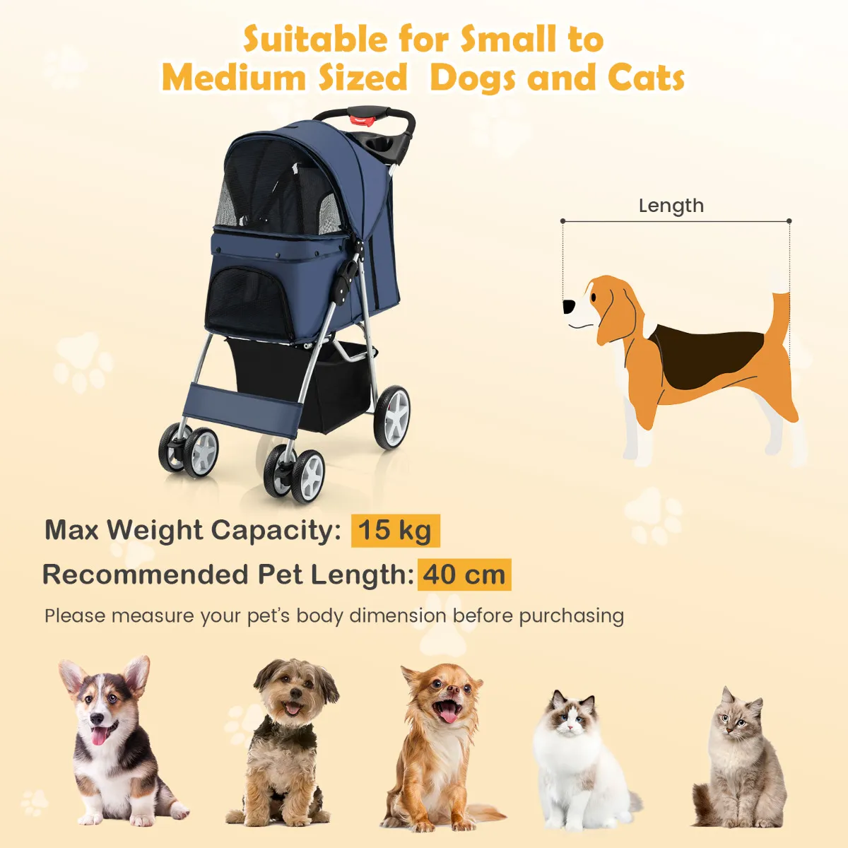 【Gemakkelijk vervoer】Deze draagbare dierenwagen met eenhandig vouwontwerp is ideaal voor reizen en kamperen, waar huisdieren tot 40,5 cm lang in passen. U kunt hem opvouwen tot een compact formaat voor eenvoudige opslag en vervoer. Opgevouwen formaat: 46 x 27 x 89 cm