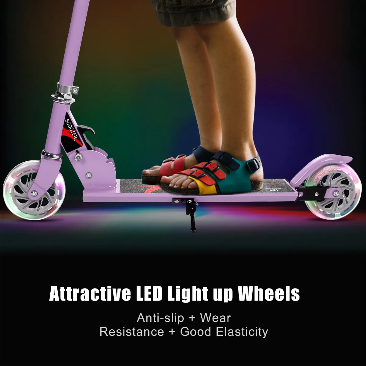 Deze step is gemaakt van een aluminium frame dat stevig en toch licht is. Met 3-hoogte verstelbaar stuur, kan de scooter worden aangepast van 63cm tot 86,5cm, dat is perfect voor uw opgroeiende kind. En het opvouwbare ontwerp maakt het gemakkelijk op te bergen. De flitsende wielen kunnen uw kind aantrekken om te rijden voor meer plezier. Deze kinderstep is het beste cadeau voor uw kind!
