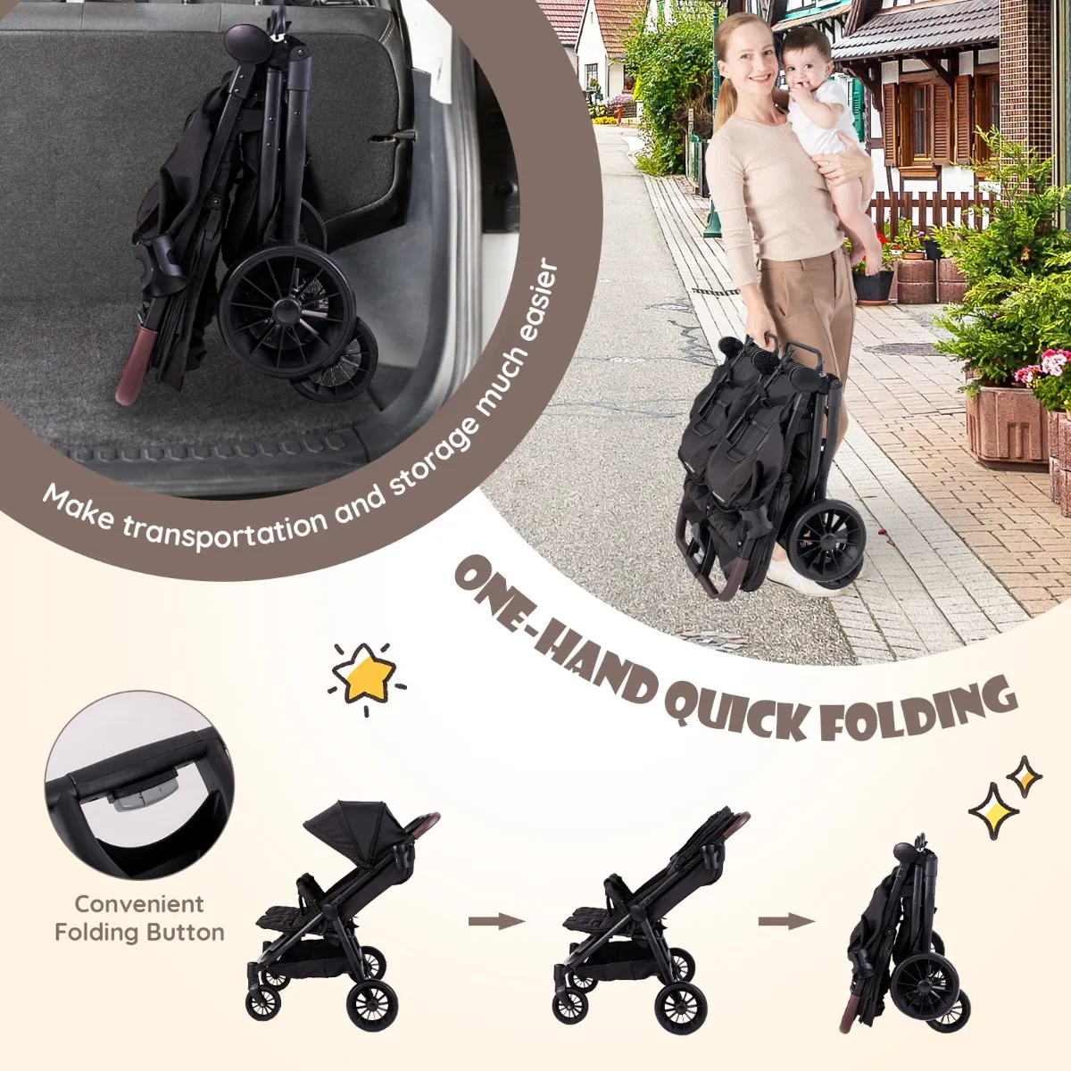 Maak uw volgende reis gemakkelijker met onze opvouwbare dubbele kinderwagen.