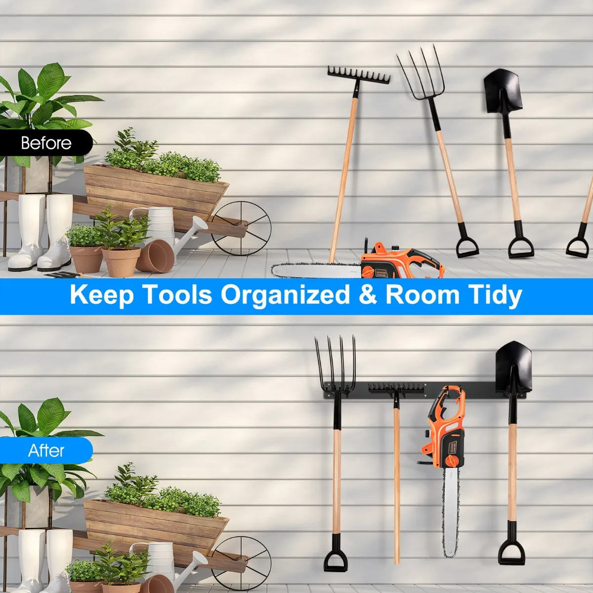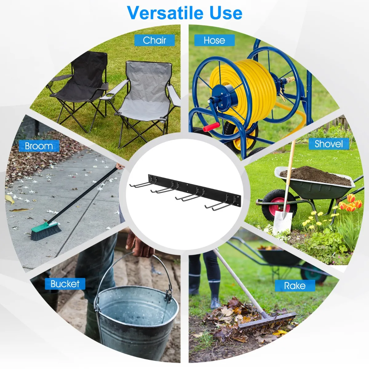 Of je hem nu in de tuin of in de garage gebruikt, deze hanger geeft je altijd meer stabiliteit bij het ophangen van meerdere gereedschappen dankzij het stevige, roestbestendige metalen materiaal. En de lengte van elke haak is 21,5 cm en de ruimte tussen elk paar haken is 19 cm, zodat deze tuingereedschaphanger gemakkelijk verschillende soorten gereedschap kan ophangen. Bovendien bespaart het ontwerp voor aan de muur ruimte in je huis en houdt het je ruimte netjes en opgeruimd.