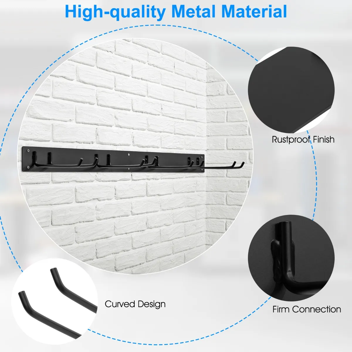 Houd je ruimte netjes en opgeruimd: Met 4 paar haken (21,5 cm voor elke haak) kun je met dit wandopbergsysteem verschillende items ophangen, waardoor een rommelige ruimte netjes en opgeruimd wordt.