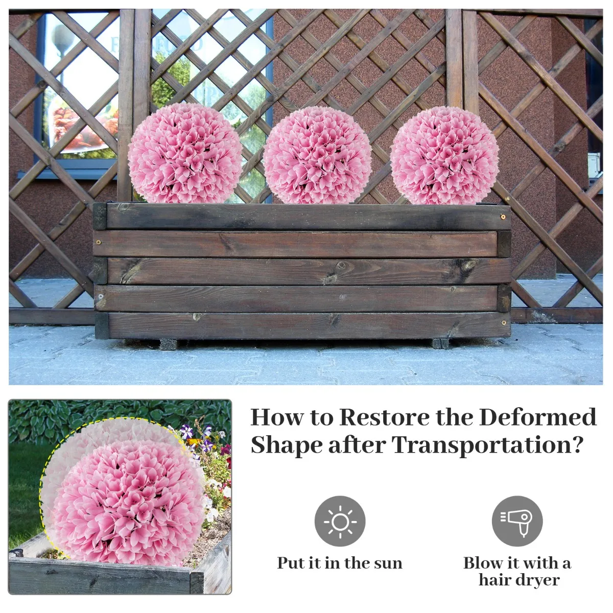 【Decoratie voor binnen en buiten】: Deze kunstmatige buxusbollen kunnen direct op de grond worden geplaatst, opgehangen (ophangkettingen niet inbegrepen) of in bloempotten worden geplaatst. Ze zijn perfect voor het verfraaien van je terras, tuin, balkon of zelfs evenementen zoals bruiloften en partijen.
