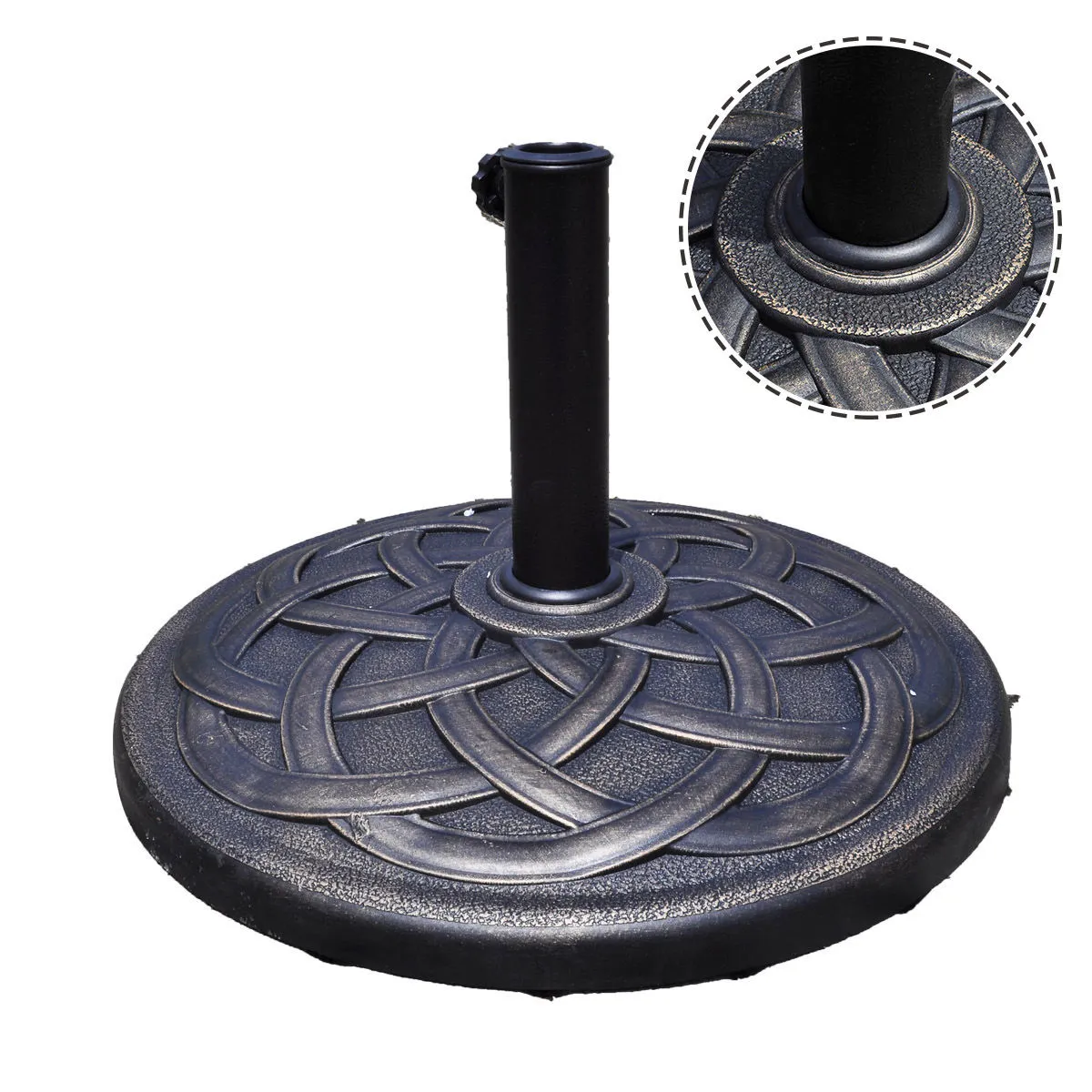 【Klassieke ronde parasolvoet】54,5 cm ronde Parasolvoet is geschikt voor de meeste outdoor paraplu’s. Dergelijke klassieke zal nooit uit de tijd. Bloem decoratief patroon plus bronzen afwerking maken uw parasols veel aantrekkelijker.