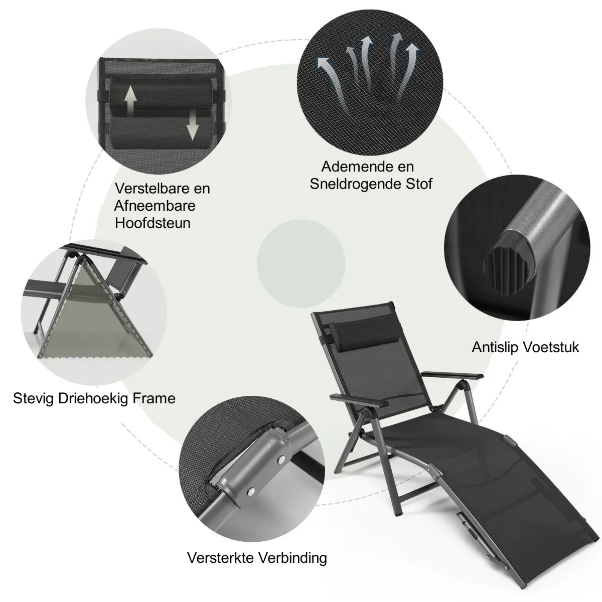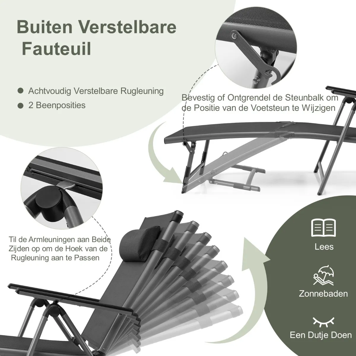 8-voudig verstelbare rugleuning om te lezen, te zonnen of een dutje te doen Leg uw voeten op de voetensteun voor volledige ontspanning en genot