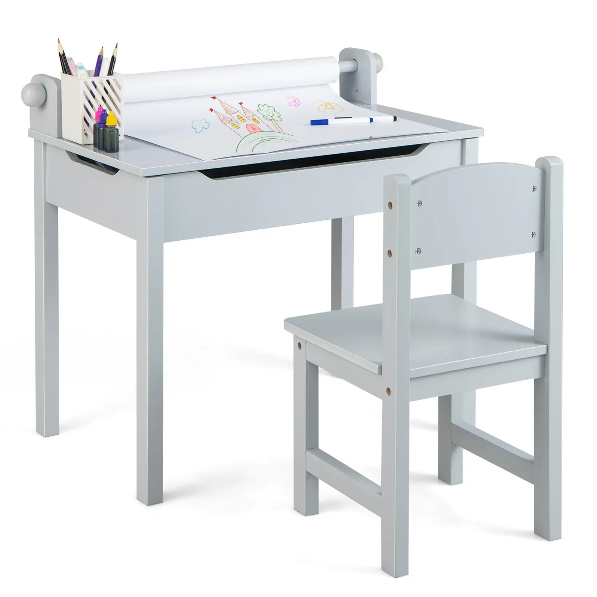 Deze set met tafel en stoel voor kinderen creëert een comfortabele omgeving voor kinderen om te genieten van verschillende activiteiten, ideaal als cadeau voor je kinderen. De papierrolhouder is ontworpen om de papierrol vast te houden en je kunt hem gemakkelijk verwijderen om te vervangen. De lade heeft ook een pennenhouder. Open de lade en er is genoeg ruimte binnenin voor vaak gebruikte kantoorbenodigdheden, boeken, schildergereedschap en meer. De uitgesneden handgrepen kunnen voorkomen dat kinderhanden zich bezeren bij het sluiten van het dienblad. Gemaakt van hoogwaardig massief hout en MDF, is deze kindertafel en stoelset duurzaam voor langdurig gebruik.