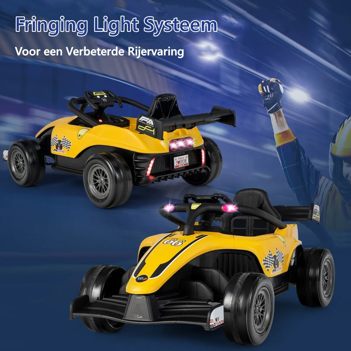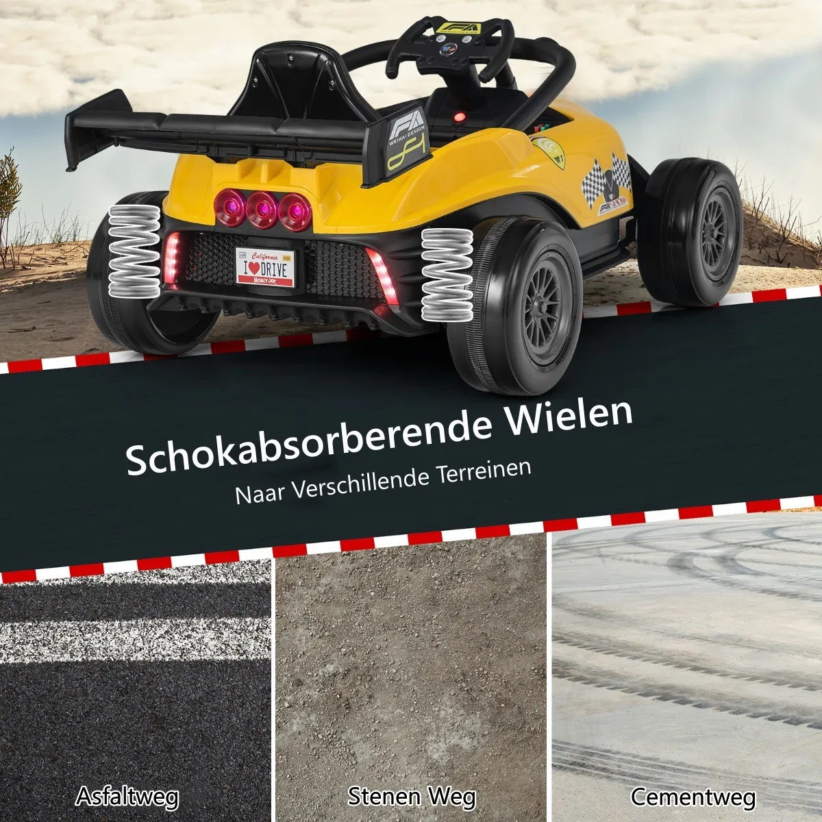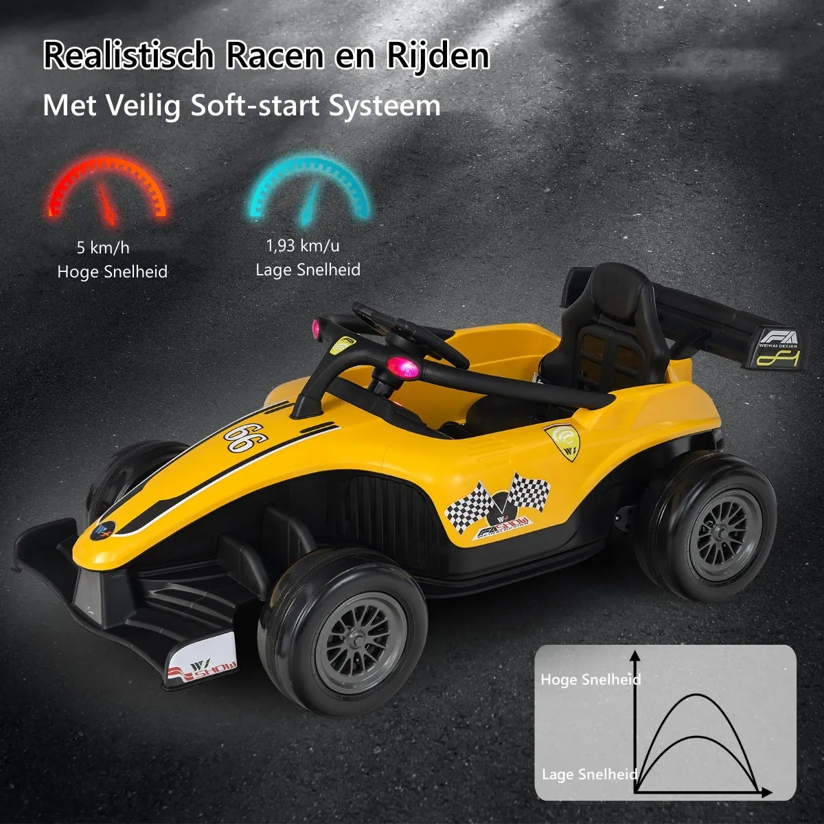 Onze kinderen auto is gebouwd met een super gaaf uiterlijk met race thema’s. Het zwierige lichtsysteem is ontworpen voor een stimulerende rijervaring. En de schokabsorberende wielen zijn geschikt voor verschillende terreinen, teer wegen, stenen wegen, cement wegen en nog veel meer. Je kinderen kunnen ervaren 3.1 mph hoge snelheid en 1.2 mph lage snelheid voor realistisch racen en rijden. Met een duurzame batterij, deze kinderen rijden op auto geeft uw kinderen ononderbroken plezier.