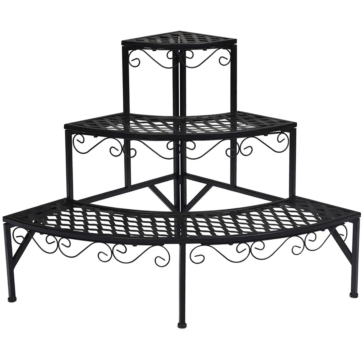 【Gebouwd voor langdurige service】Gemaakt van premium ijzer met een hoge dichtheid verweving, zal deze plantenstandaard met 3 verdiepingen sterk genoeg zijn zonder structurele verdraaiing. Bovendien zullen de 4 ijzeren benen 4 steunpunten verstrekken om het omkantelen te verhinderen. De zwarte deklaag maakt het ook roest-bestand voor openlucht & binnengebruik voor lange tijd.