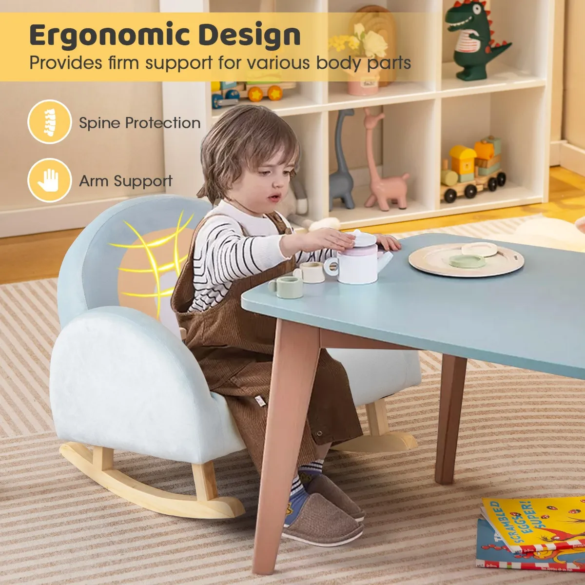 Comfortabele zitervaring : De gestoffeerde schommelstoel heeft een brede rugleuning, aangepaste armleuningen en een ruime zitting die de ruggengraat helpen beschermen en de armen ondersteunen. Dankzij het ergonomische ontwerp en de juiste zithoogte helpt deze schommelstoel kinderen een goede zithouding te ontwikkelen.