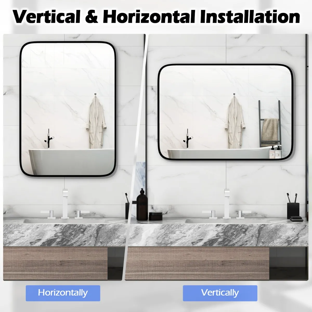 【Aluminium frame van hoge kwaliteit】 Deze high-definition badkamerspiegel heeft een stevig aluminium frame dat water- en roestbestendig is en dus lang meegaat. Bovendien is hij perfect bestand tegen vocht in de badkamer en voegt hij zowel stijl als functionaliteit toe aan je ruimte.